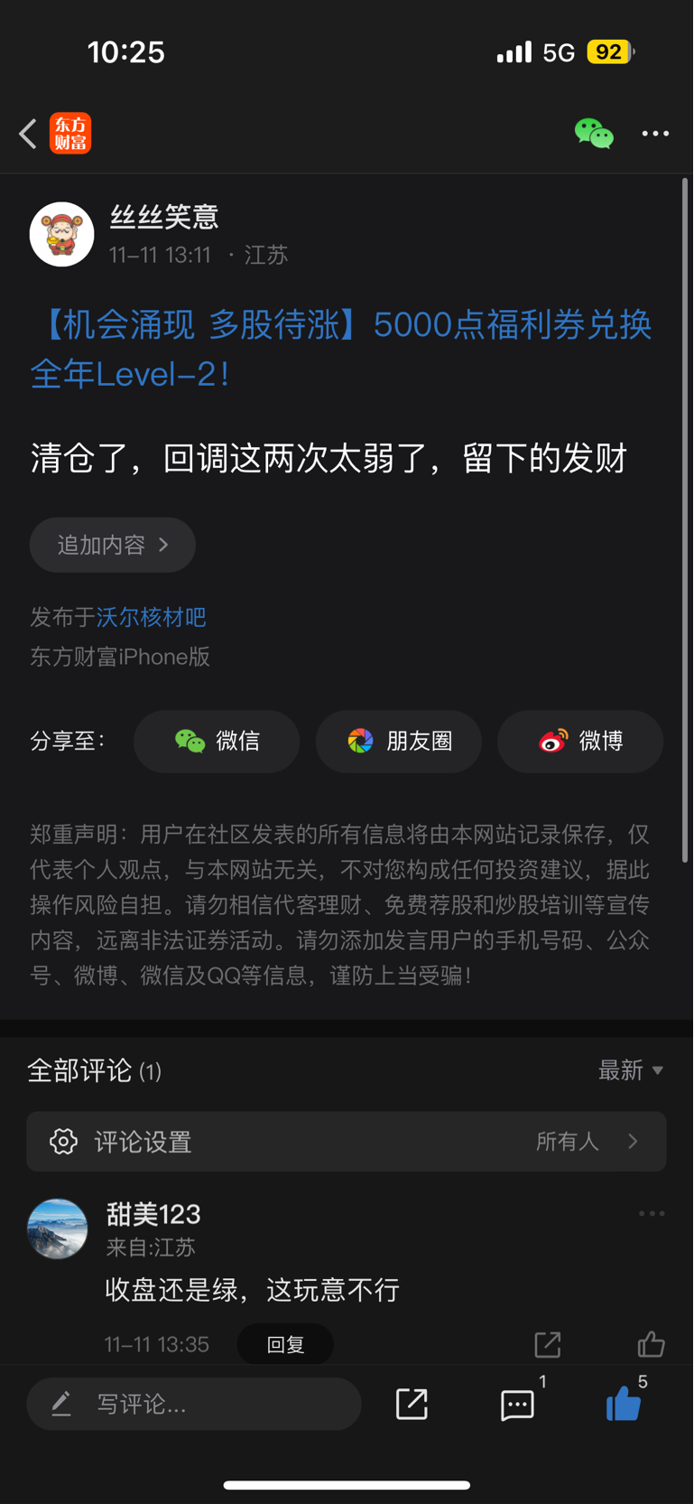 温馨提示: 1.根据《证券法》规定,禁止编造、传播虚假信息或者误导性信息,扰乱证券市场;2.用户在本社区发表的所有资料、言论等仅代表个人观点,与本网站立场无关,不对您构成任何投资建议。用户应基于自己的独立判断,自行决定证券投资并承担相应风险。《东方财富社区管理规定》
