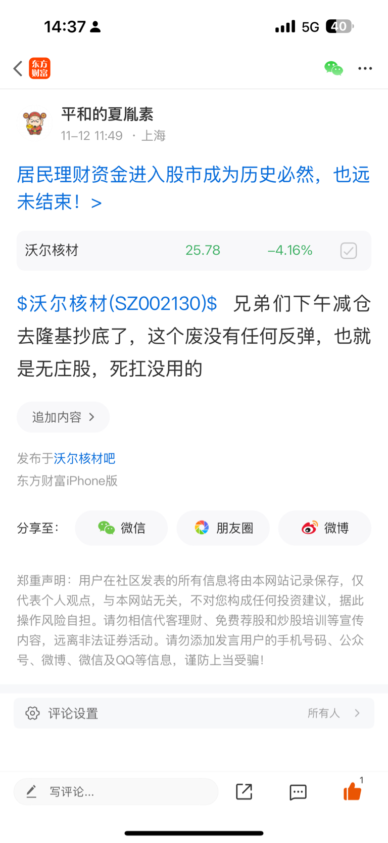$沃尔核材(SZ002130)$ 满仓进了隆基绿能,抄底成功