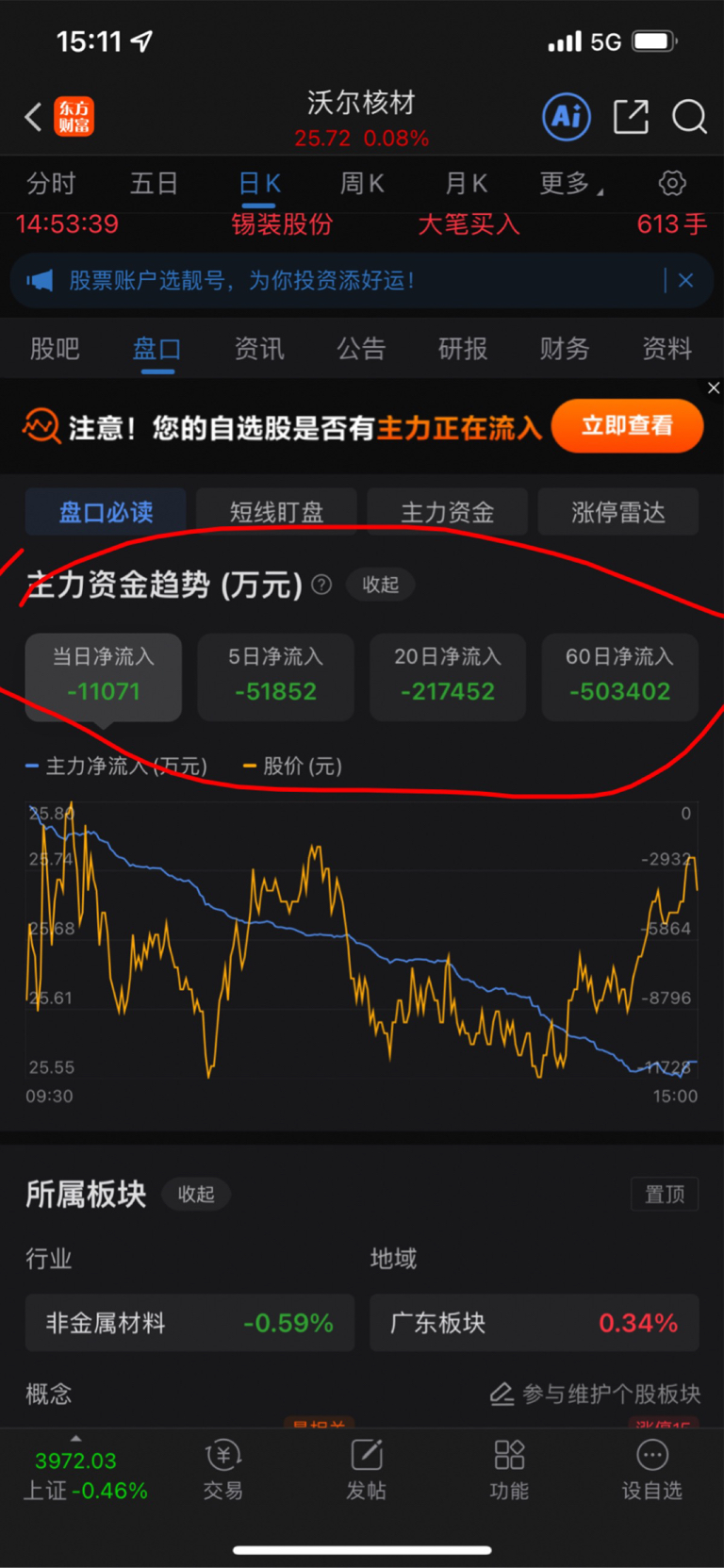 $沃尔核材(SZ002130)$ 主力啊全跑了!天天流出