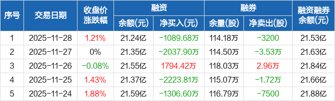 沃尔核材:融资净偿还1089.68万元,融资余额21.24亿元(11-28)
