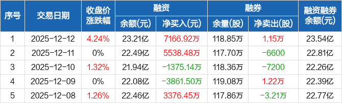 沃尔核材:融资净买入7166.92万元,融资余额23.21亿元(12-12)