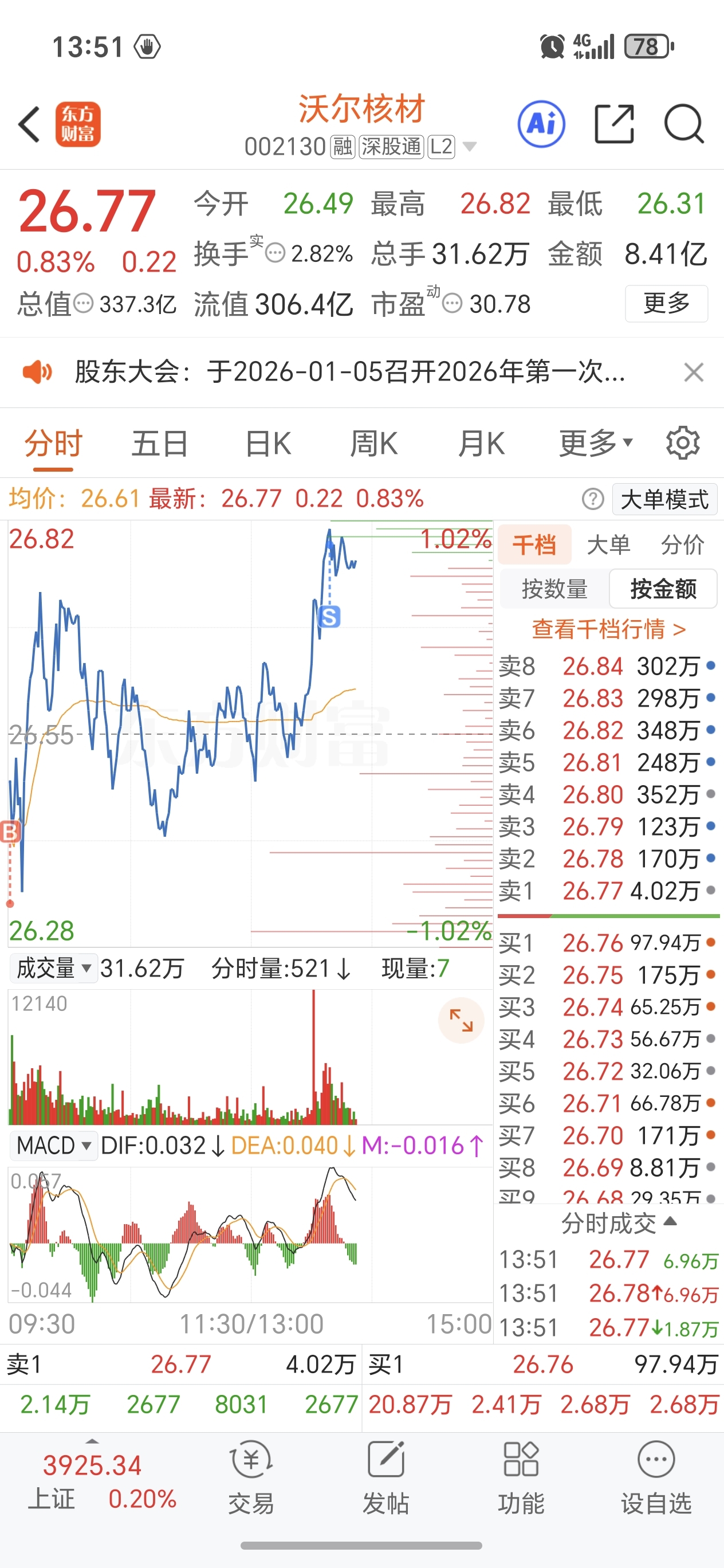 $沃尔核材(SZ002130)$ 能T就T吧,这票不能瞎格局,什么时候T飞也认了