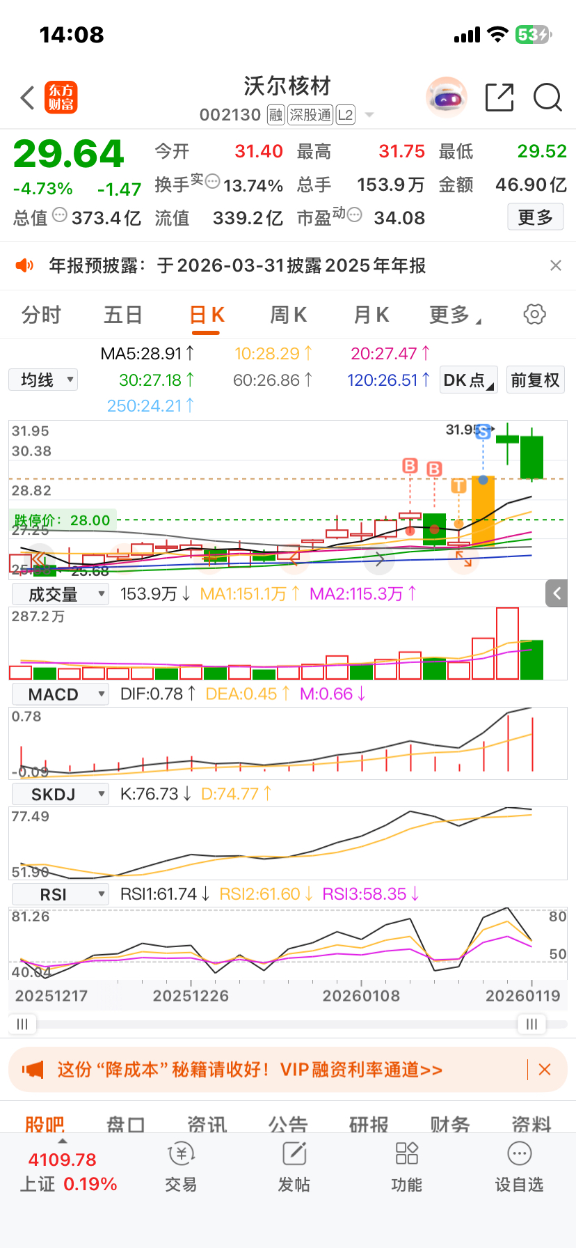 $沃尔核材(SZ002130)$ 持续关注,看20线给不给机会回来