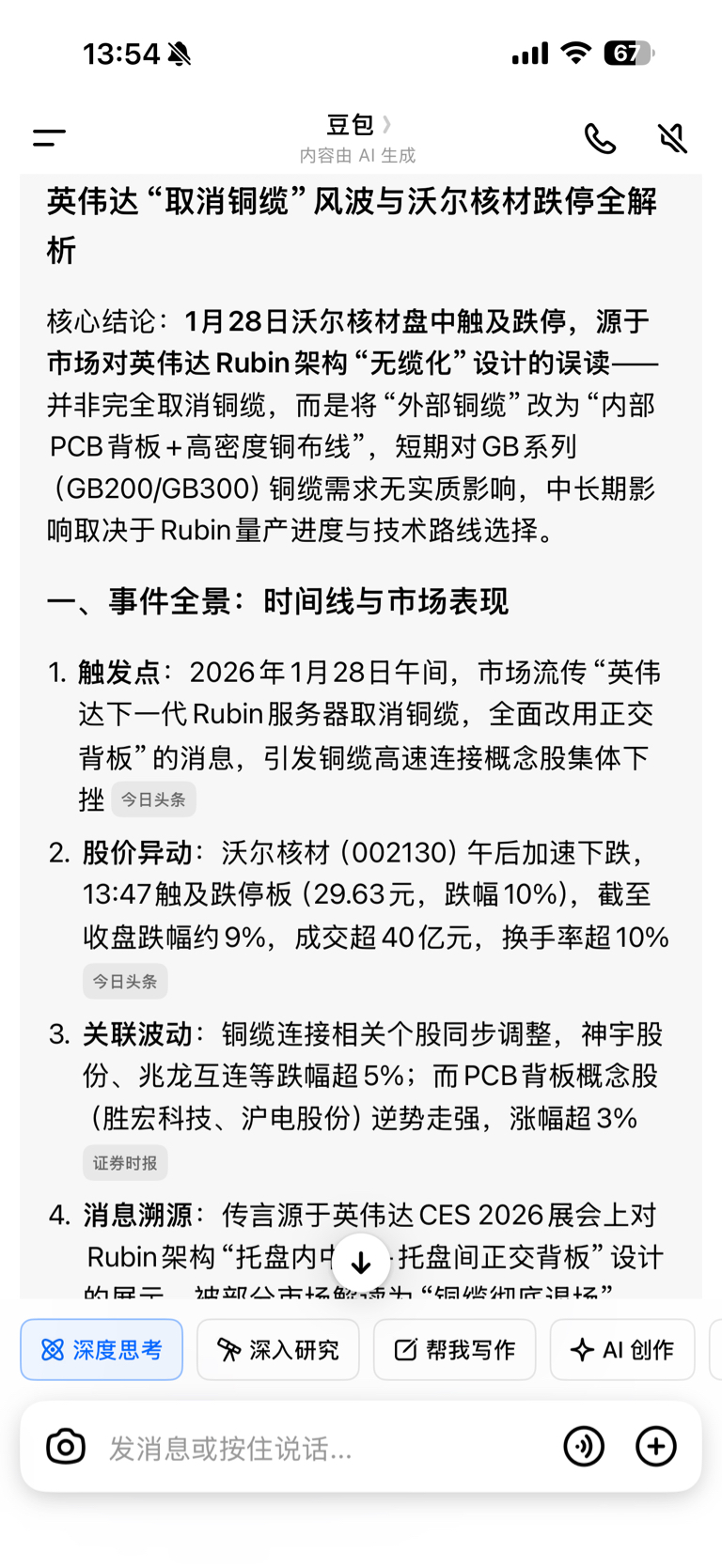 $沃尔核材(SZ002130)$ 是这个原因导致的跌停?