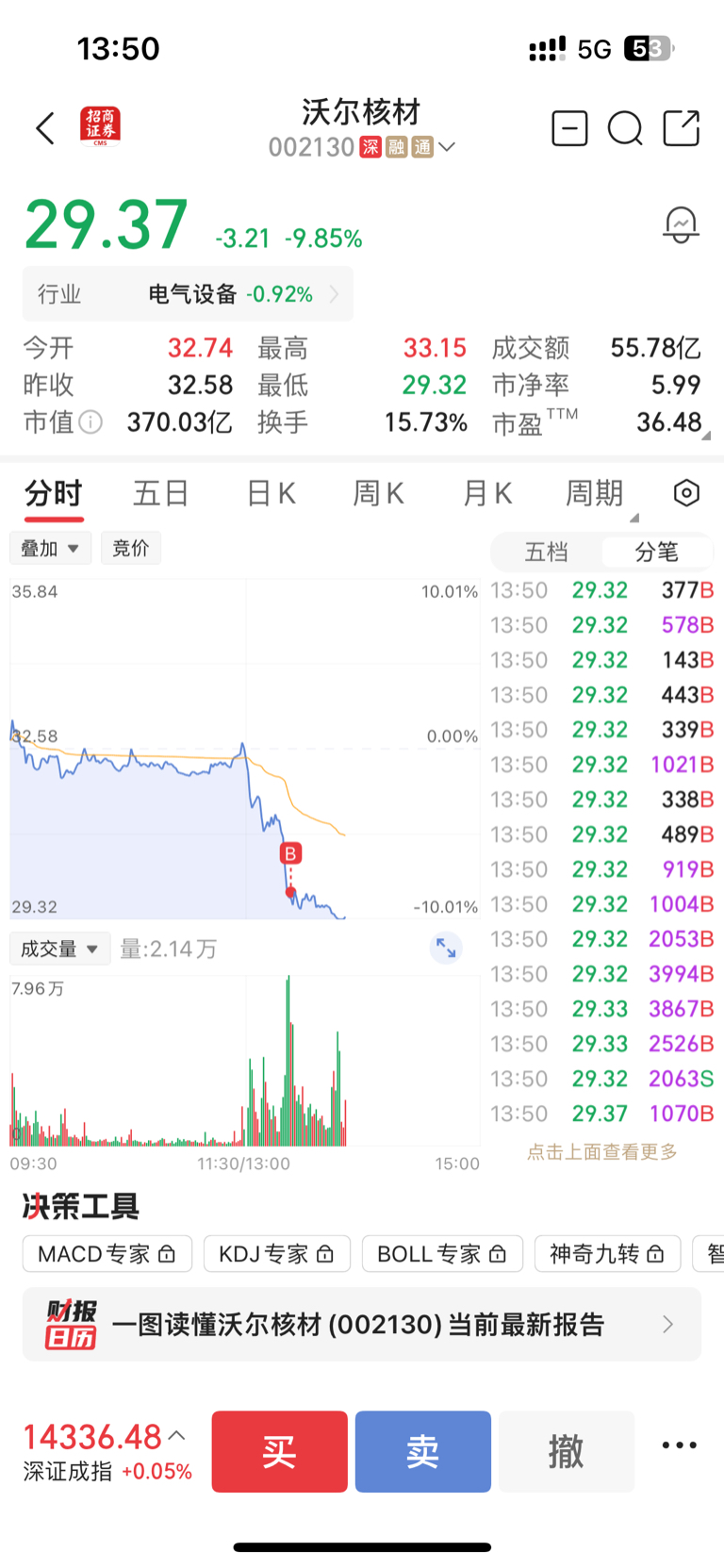 $沃尔核材(SZ002130)$ 我抄底了明天啥情况