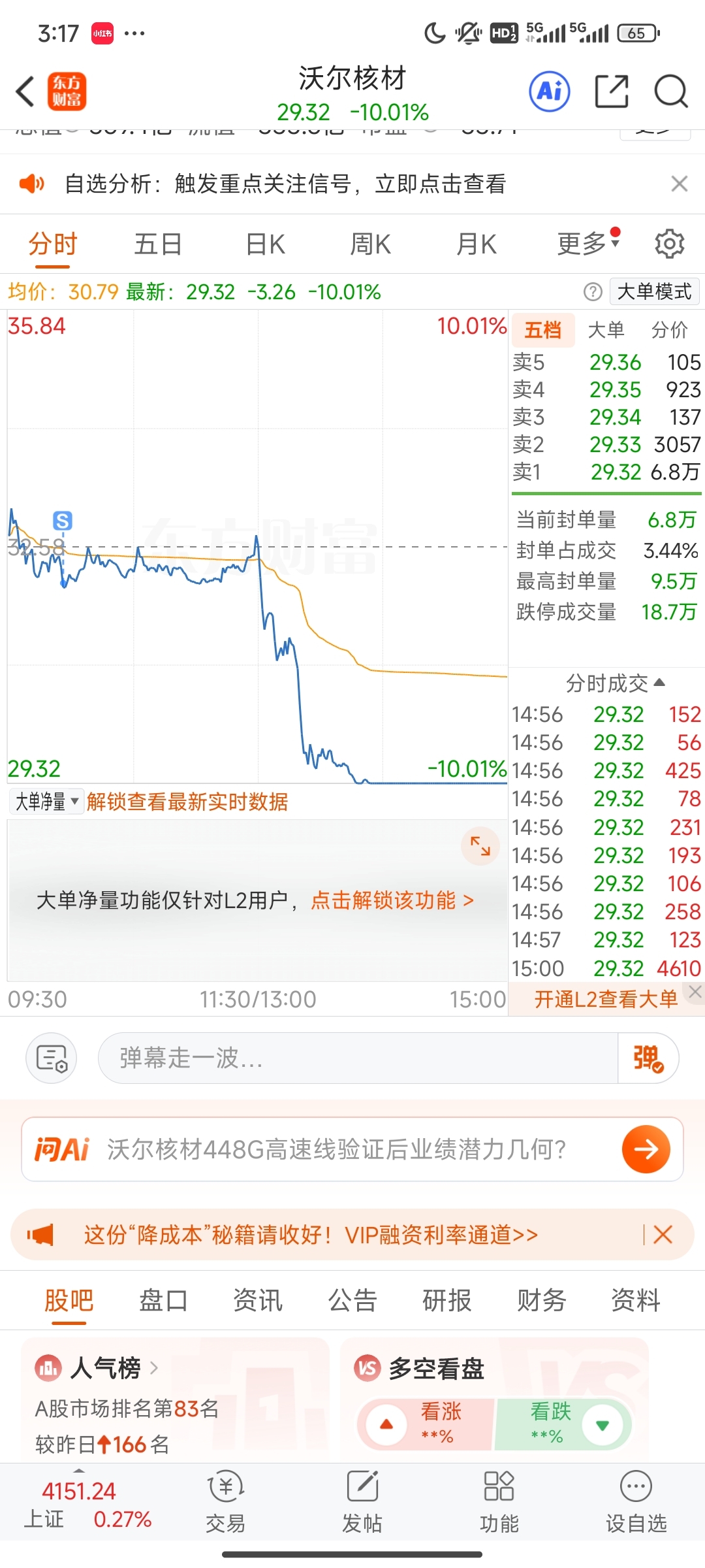 我去啥运气这是,怎么突然跌停板了