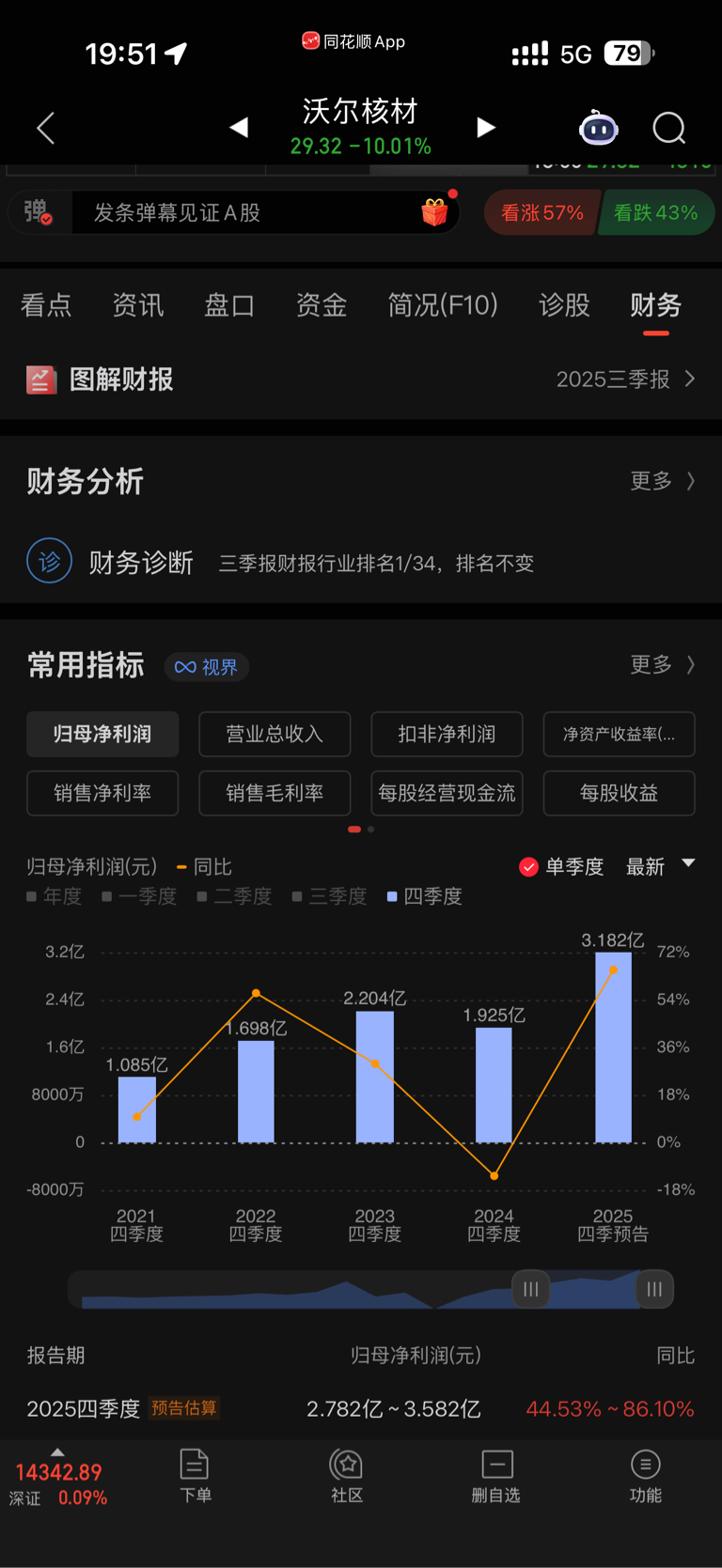 $沃尔核材(SZ002130)$ 这四季度很好的业绩啊.大增