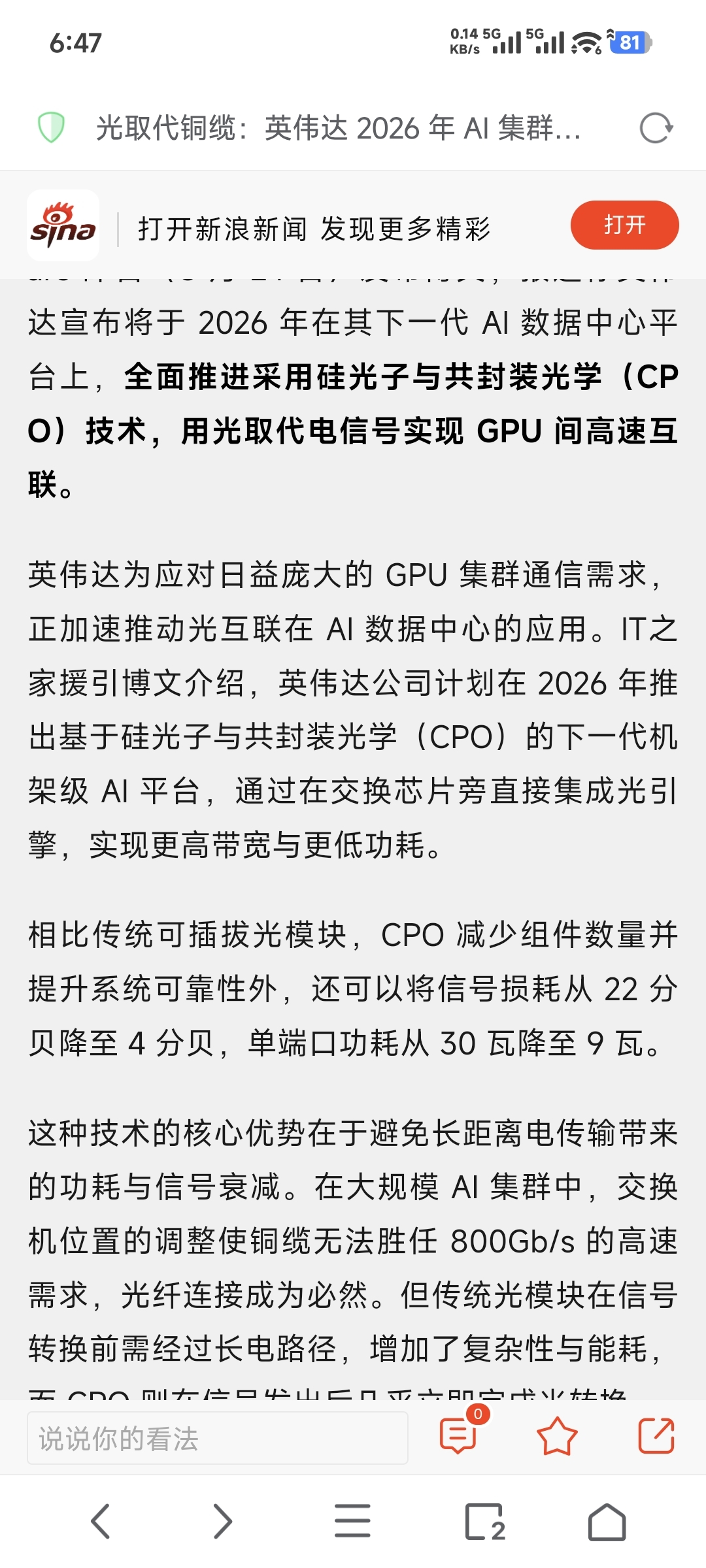 $沃尔核材(SZ002130)$ 英伟达宣布全面推进用光信号取代电信号。光纤的上限远高于铜缆,随着技术发展铜缆已经有些跟不上了。