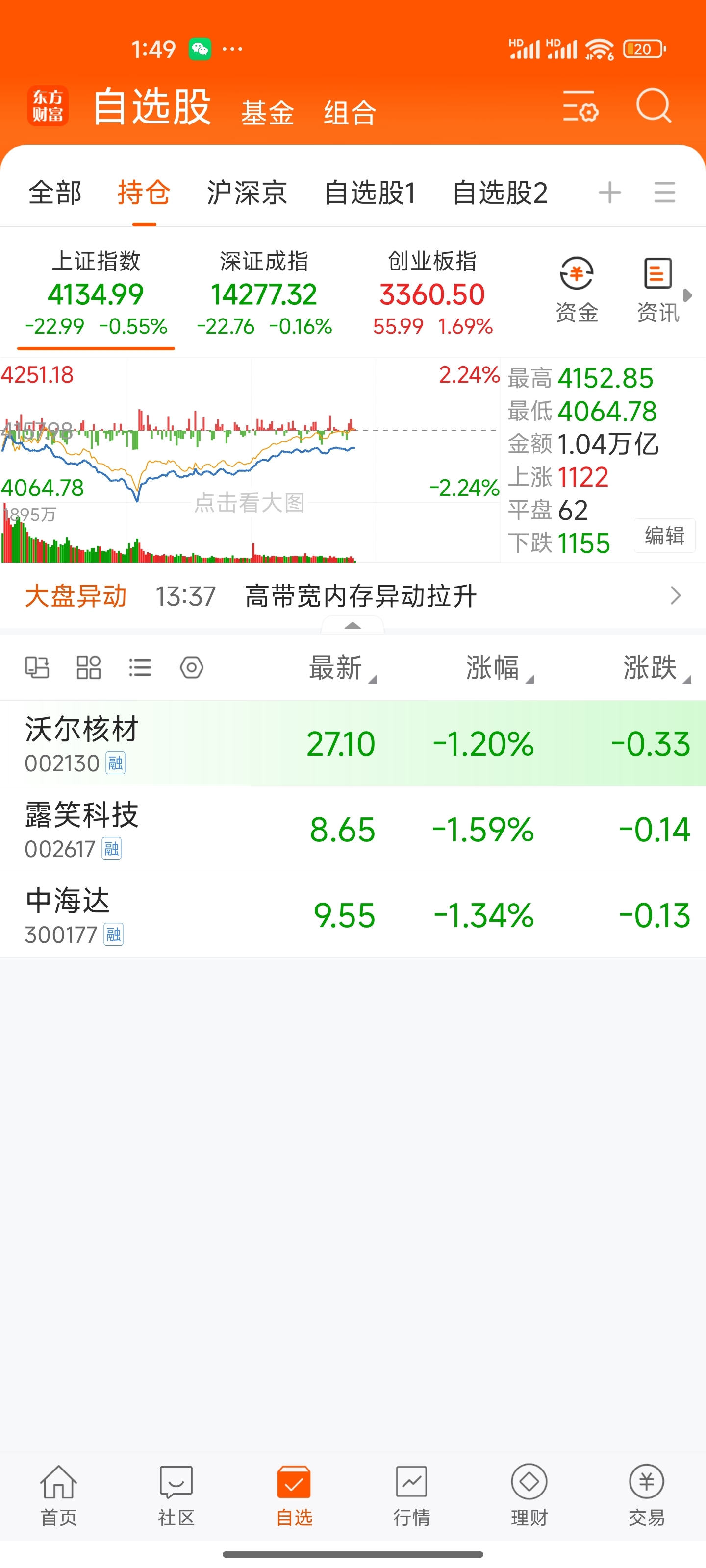 $沃尔核材(SZ002130)$ $中海达(SZ300177)$ $露笑科技(SZ002617)$ 怪我,持有这3个票5天亏5天,沃尔占70仓位亏我2万多