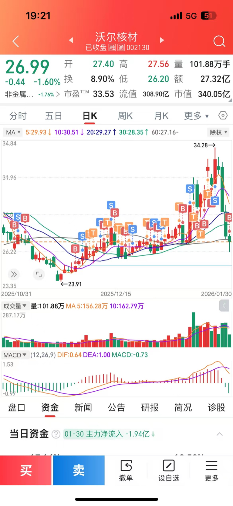 $沃尔核材(SZ002130)$ 我的沃沃,俺又来喽!26.5建仓。期待横盘 做t爽歪歪