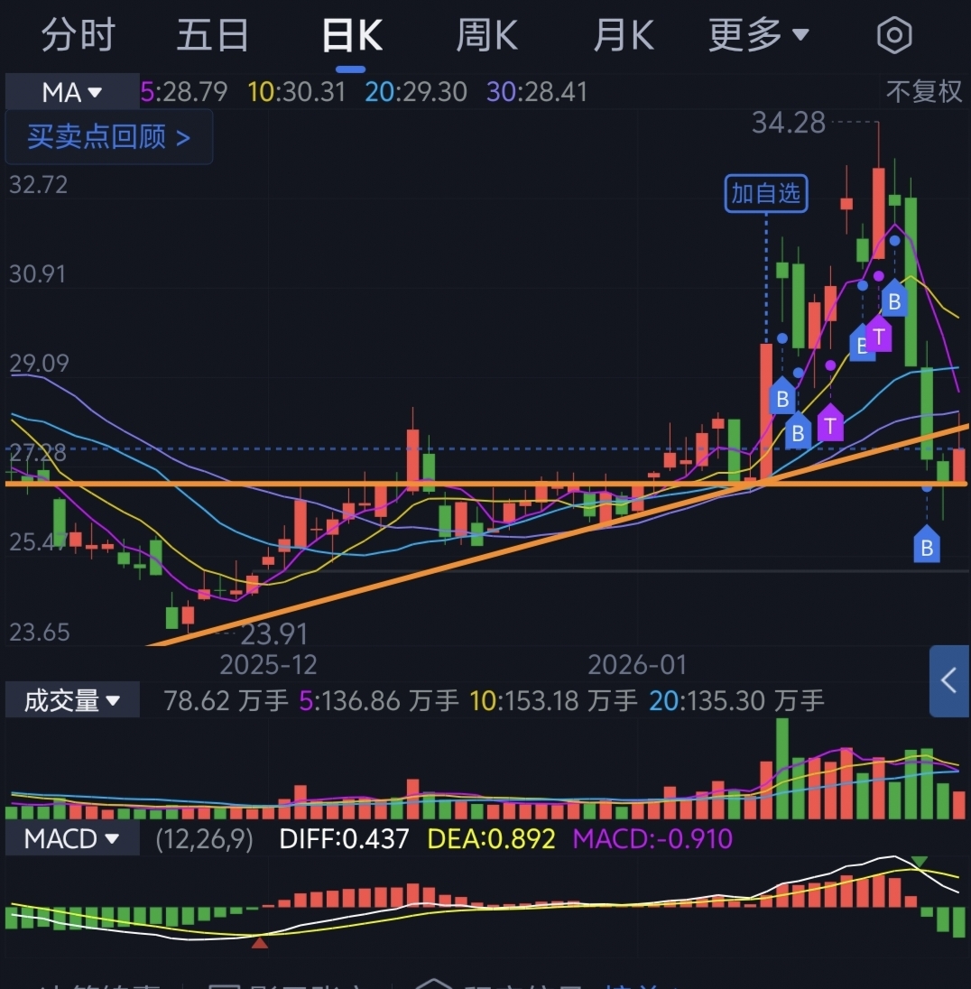 短期26.9的支撑,高点28压力位,破28趋势上行,破26.9就得先减仓,站稳下