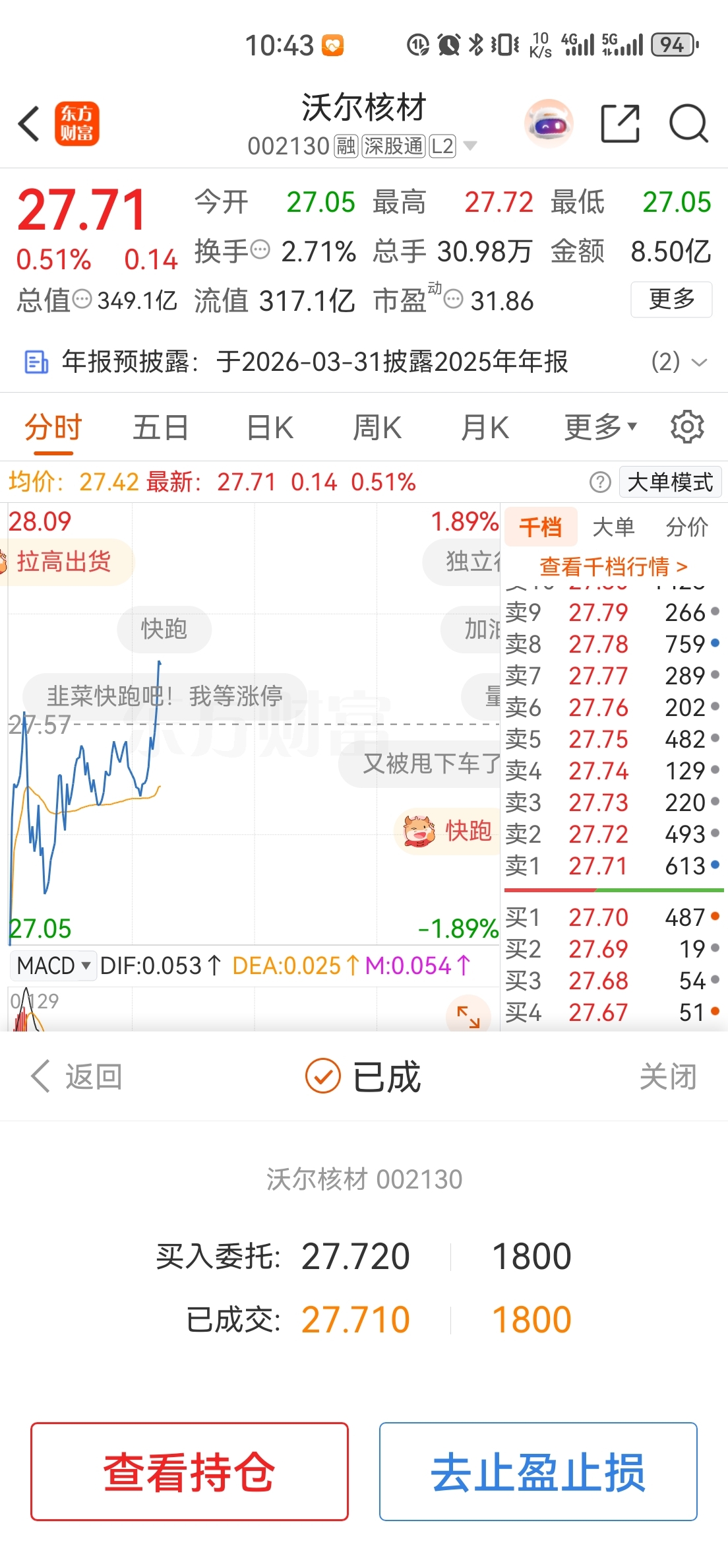 $沃尔核材(SZ002130)$ 看了一会水上了,感觉可以试试水。