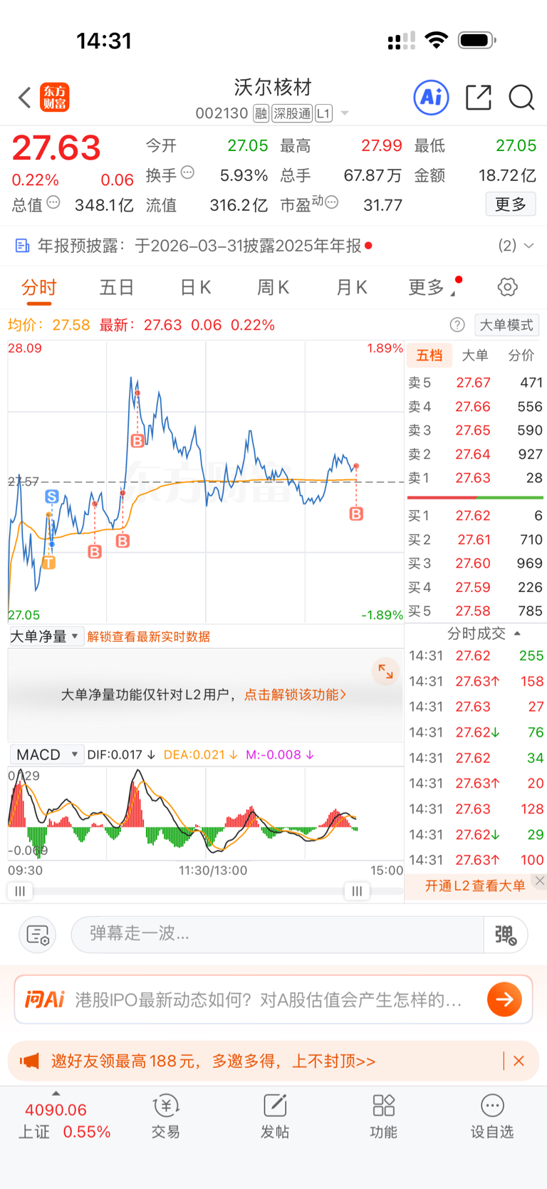 $沃尔核材(SZ002130)$ 生死难料 冲着你的业绩来的 看到30
