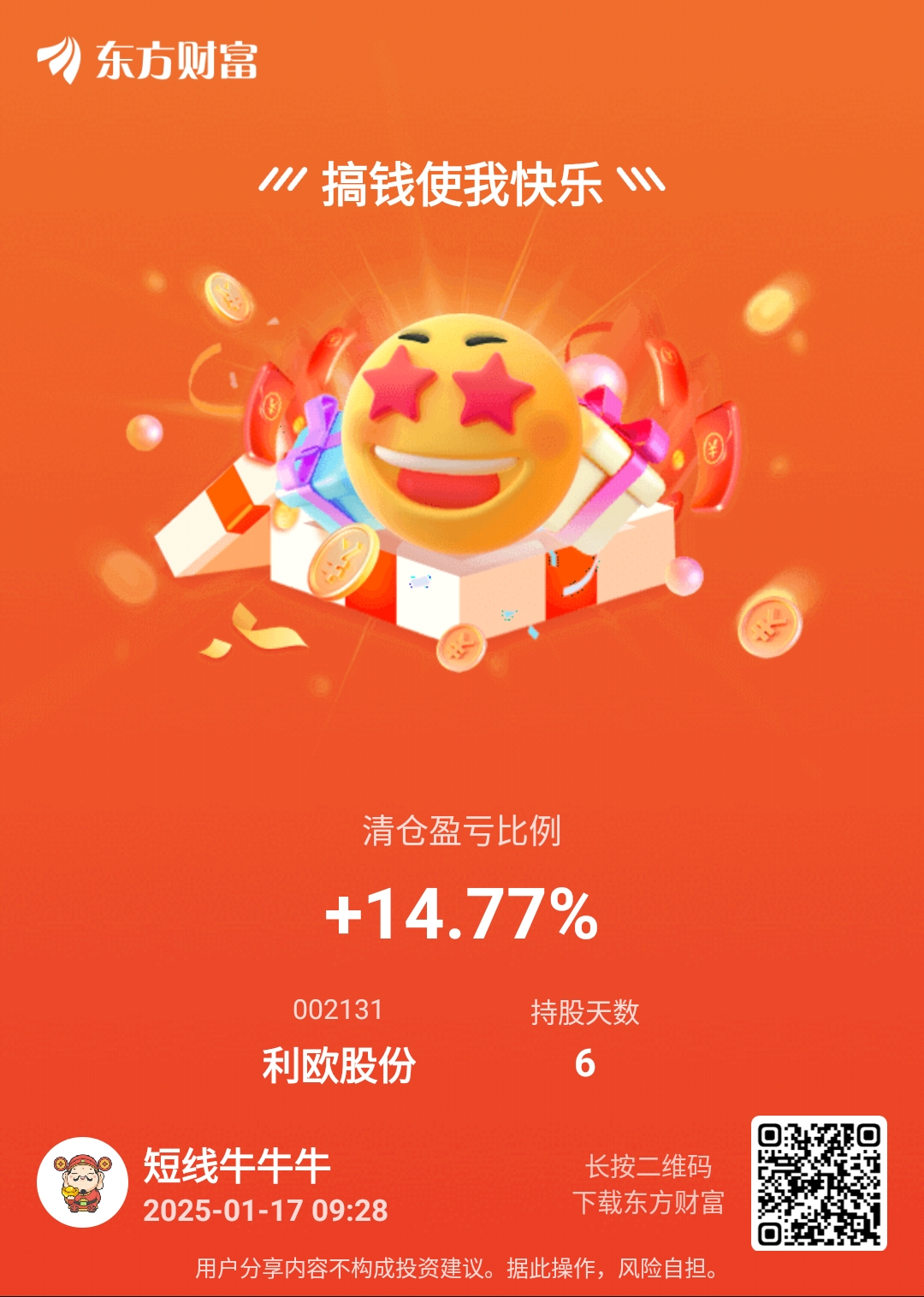 $利欧股份(SZ002131)$ 昨天清了,今天低点再接回来