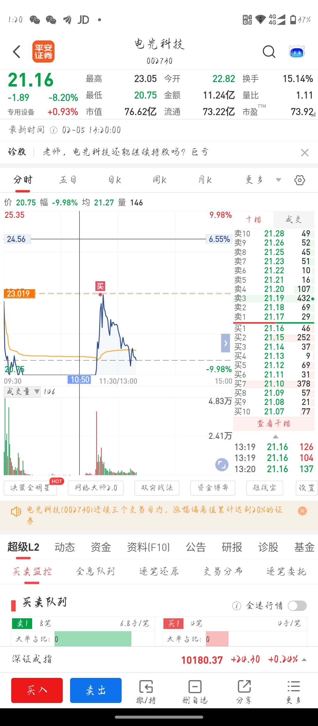 $利欧股份(SZ002131)$ 没搞懂怎么把电光科技加春晚自选概念了,买了这