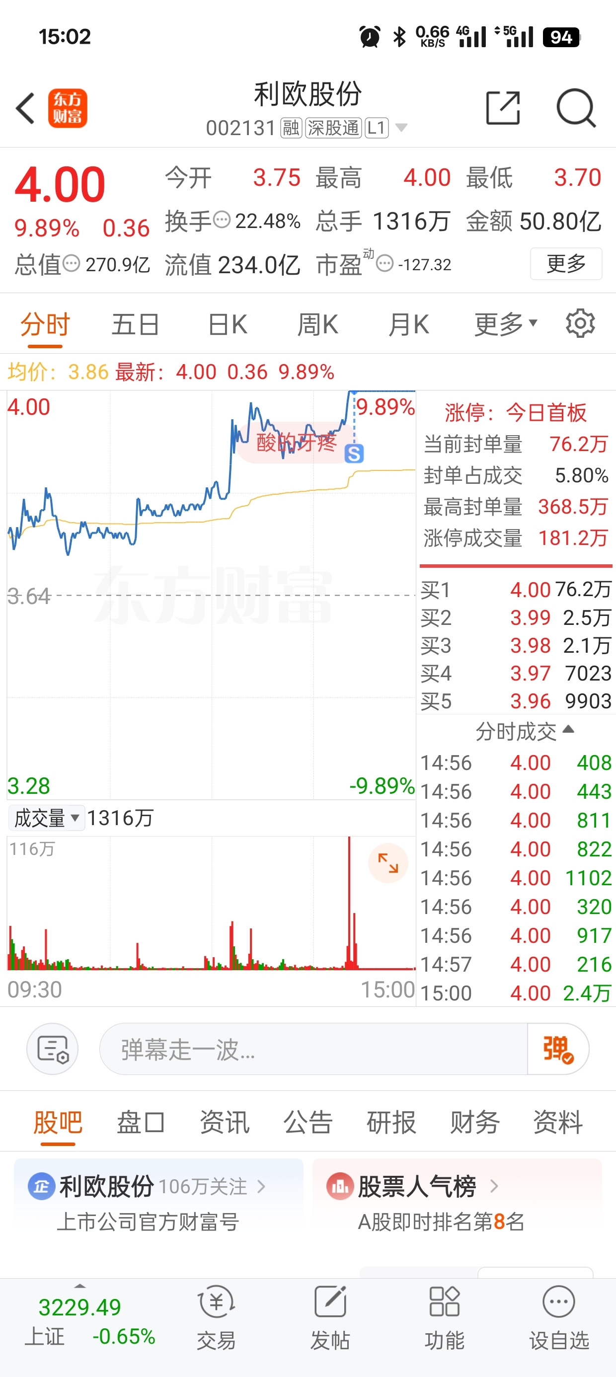 $利欧股份(SZ002131)$ 开板把我洗出来了