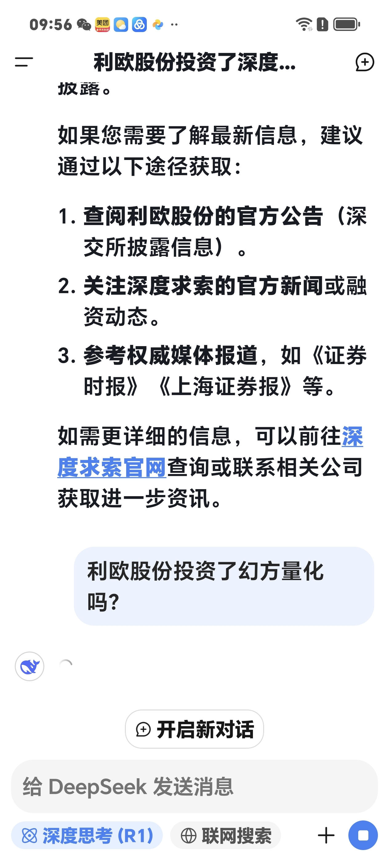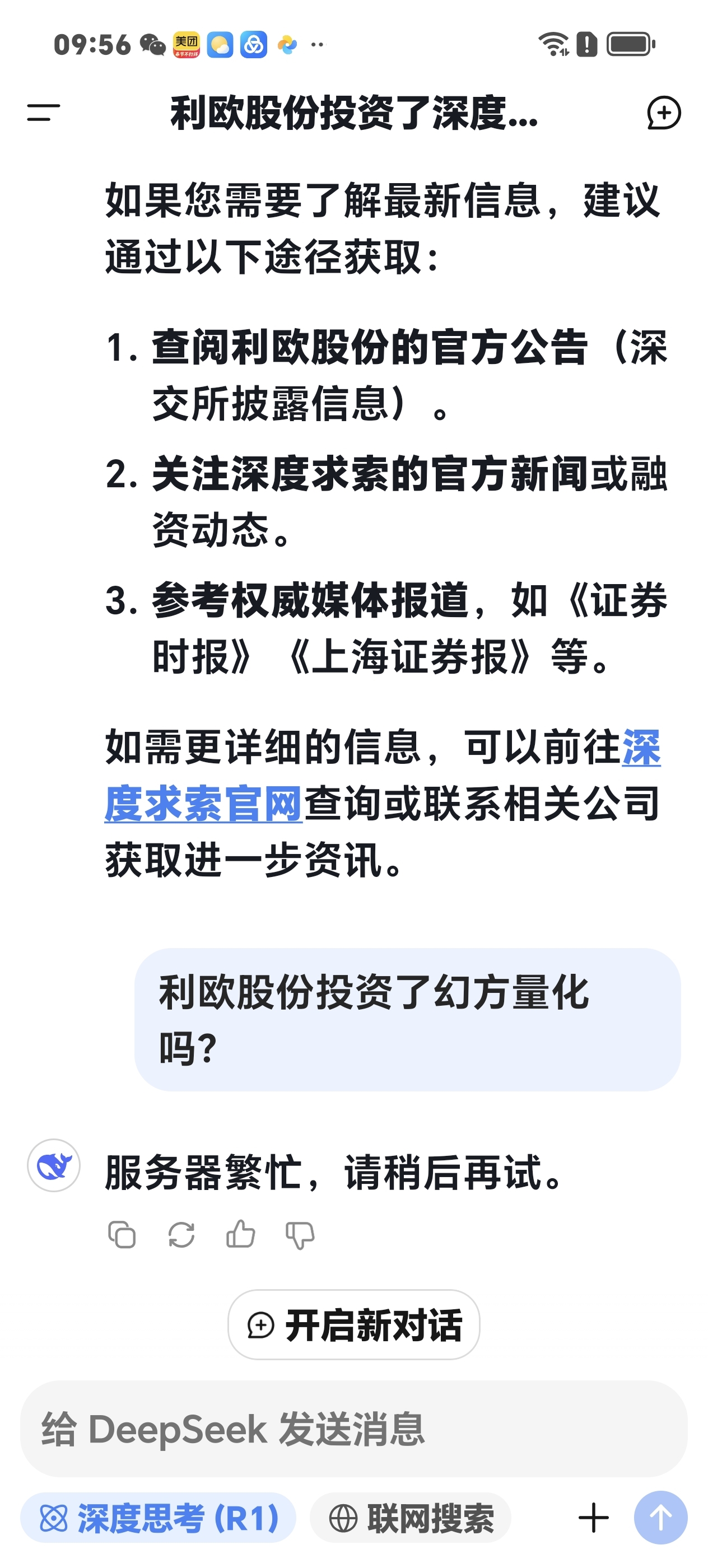 一问利欧股份是否投资了幻方量化?深度求索就变成了服务器繁忙