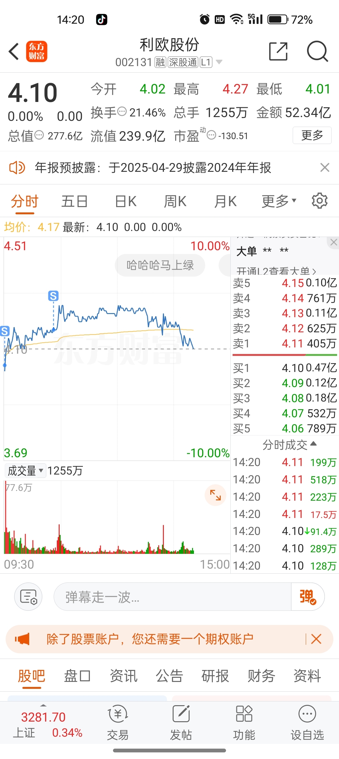 早上还在想可能踏空了,现在看来我是对的,这种炒作股不能久拿
