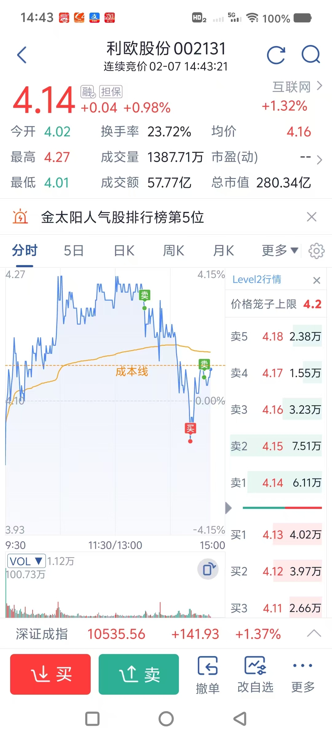 $利欧股份(SZ002131)$ 为了稳健盈利,今天做一个点的T