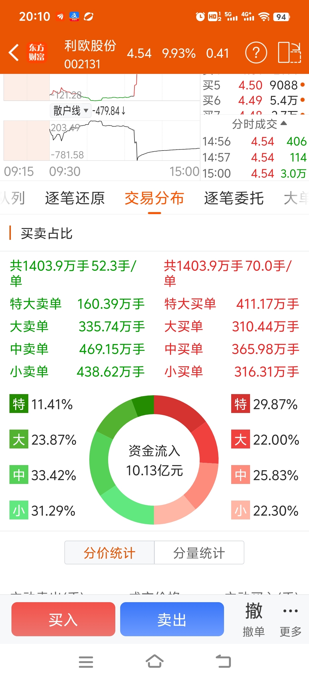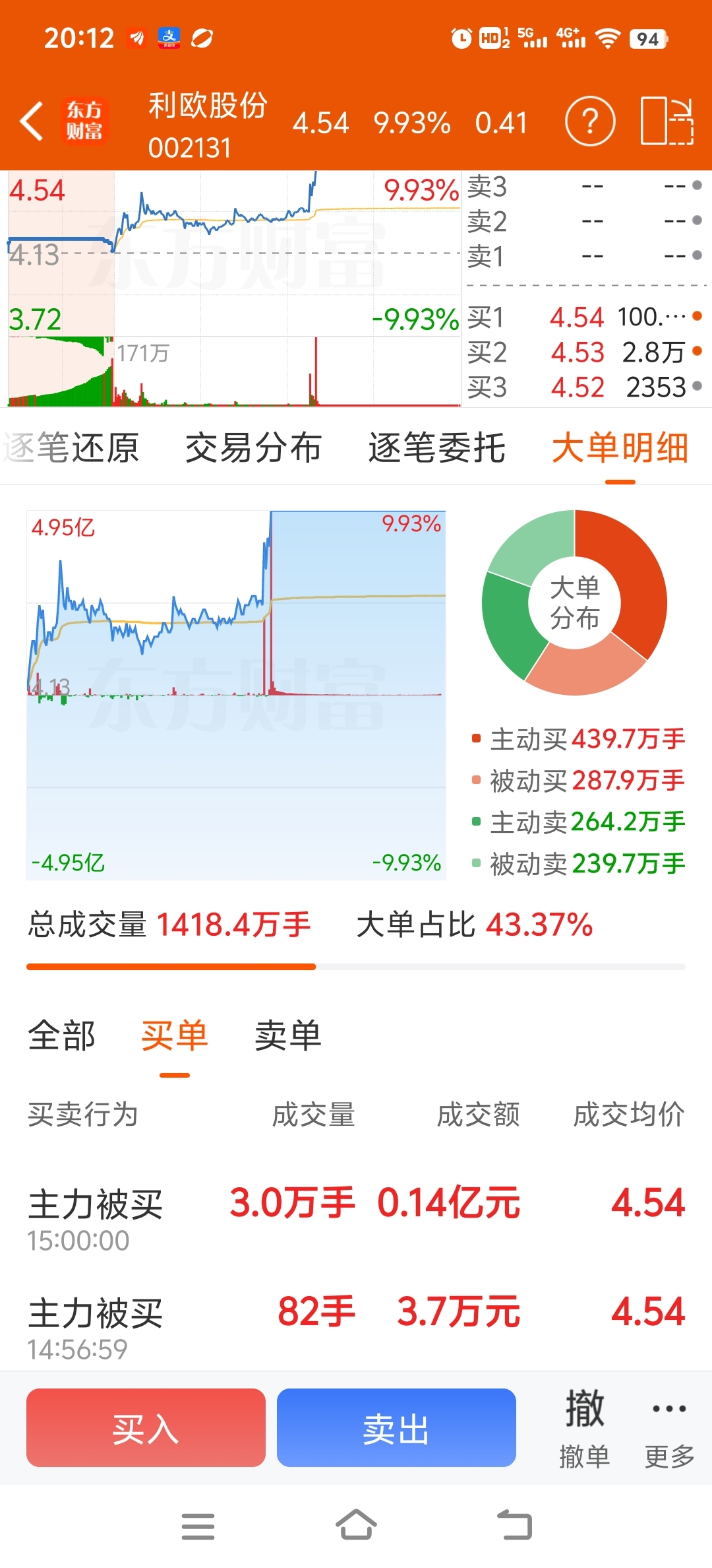 利欧股份今天主力买卖交易明细图如下: