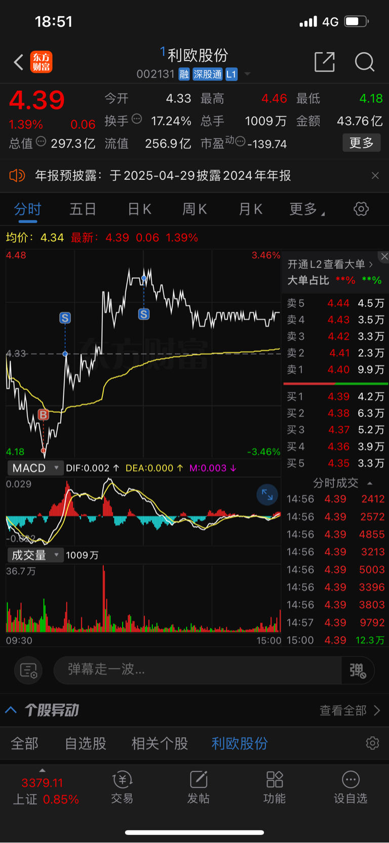 $利欧股份(SZ002131)$ #周度策略# #实盘记录# 明天目标价位4.6元