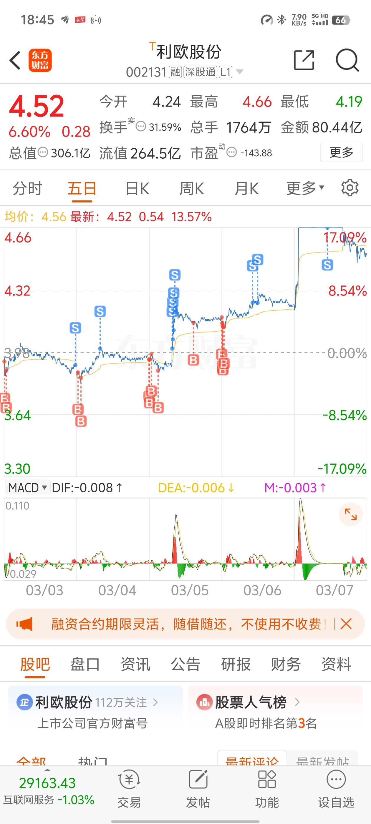 温馨提示: 1.根据《证券法》规定,禁止编造、传播虚假信息或者误导性信息,扰乱证券市场;2.用户在本社区发表的所有资料、言论等仅代表个人观点,与本网站立场无关,不对您构成任何投资建议。用户应基于自己的独立判断,自行决定证券投资并承担相应风险。《东方财富社区管理规定》