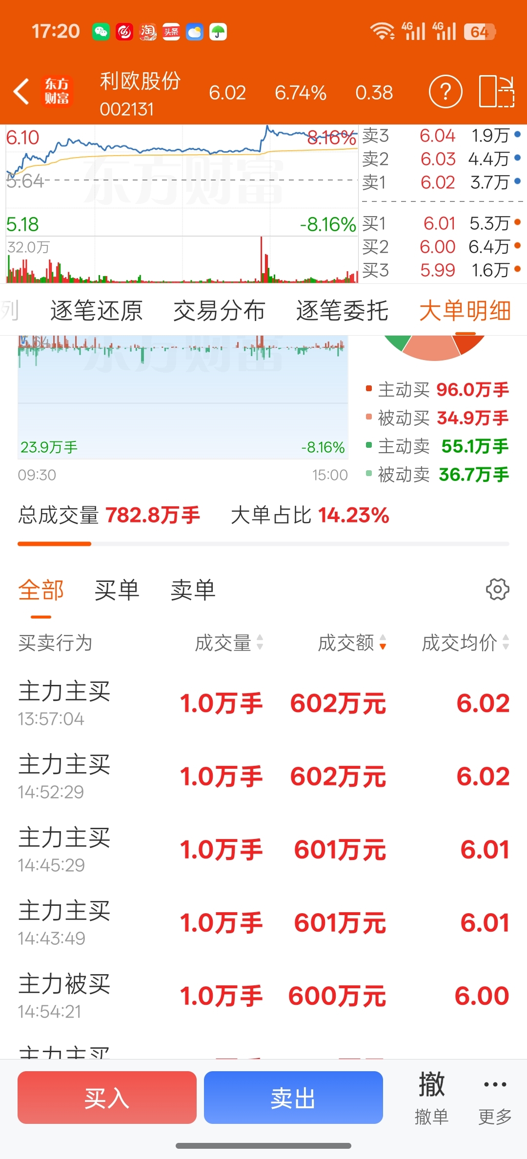 $利欧股份(SZ002131)$ 尾盘6万手抢筹。