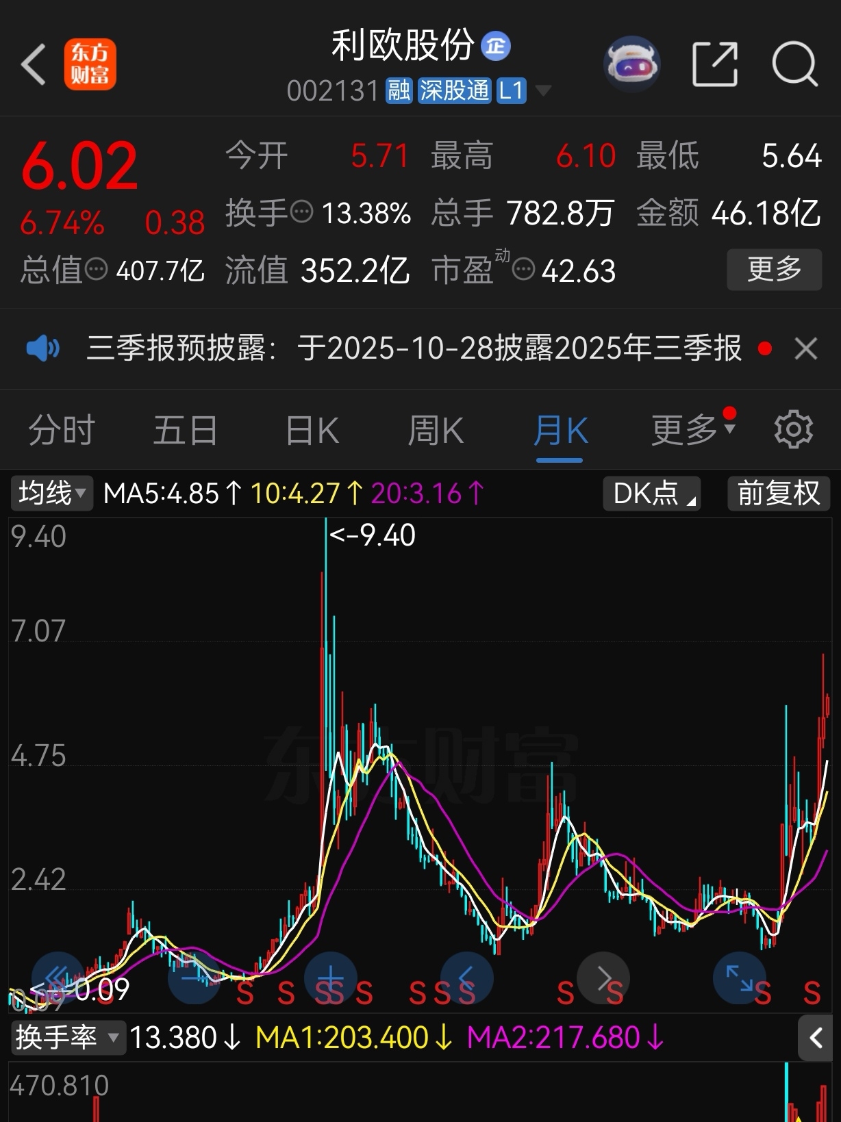 $利欧股份(SZ002131)$ 快要接近历史上的最高点了,会不会是最后的晚餐,买了也愁,不买也愁