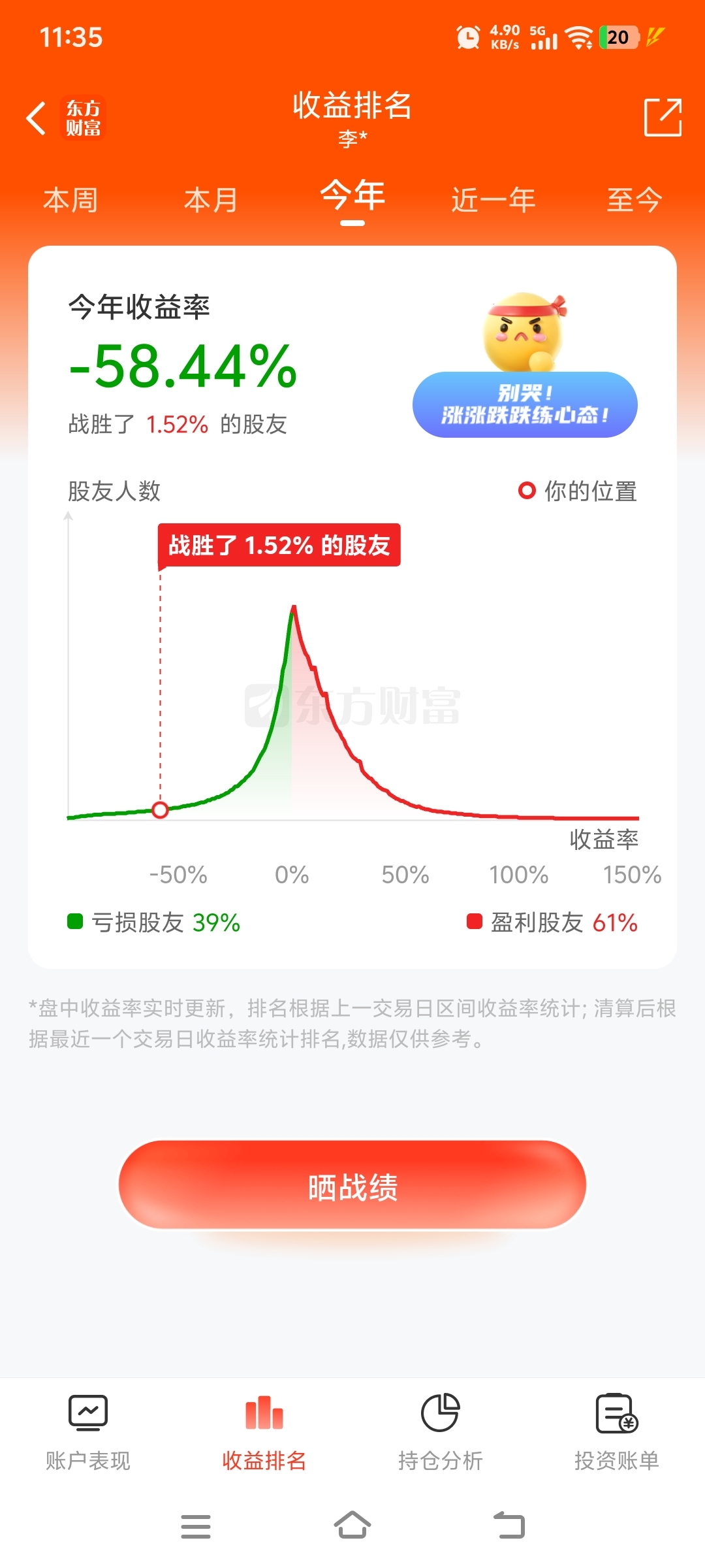 牛市以来频繁追热点亏了58%,刚5.46全仓欧皇卸载东财拿到年底,欧皇给力点让我
