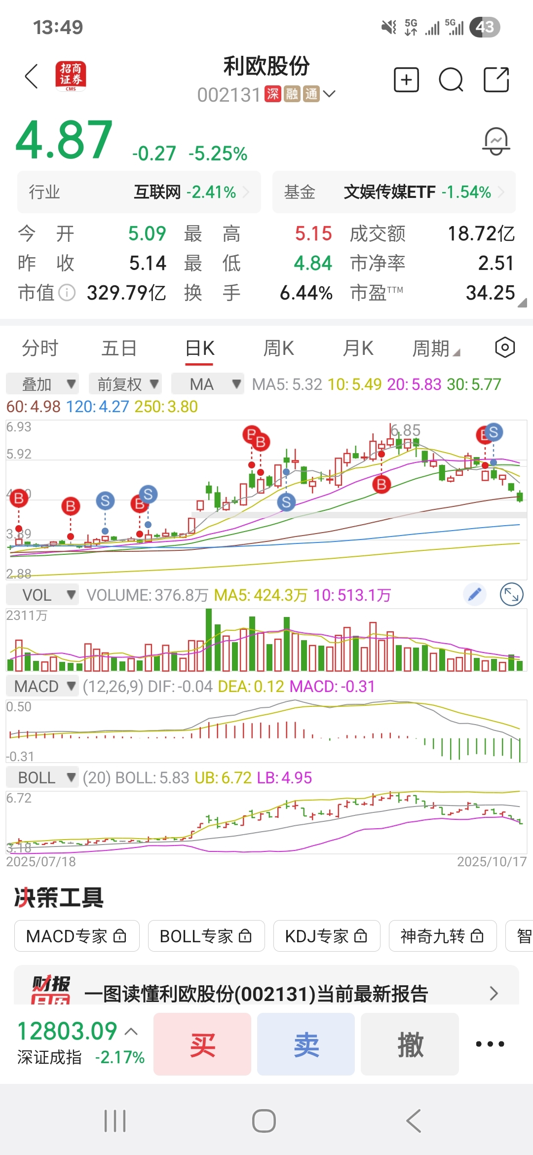 $利欧股份(SZ002131)$ 亏了十个点跑了