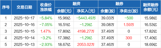 利欧股份:融资净偿还5443.49万元,融资余额15.96亿元(10-17)