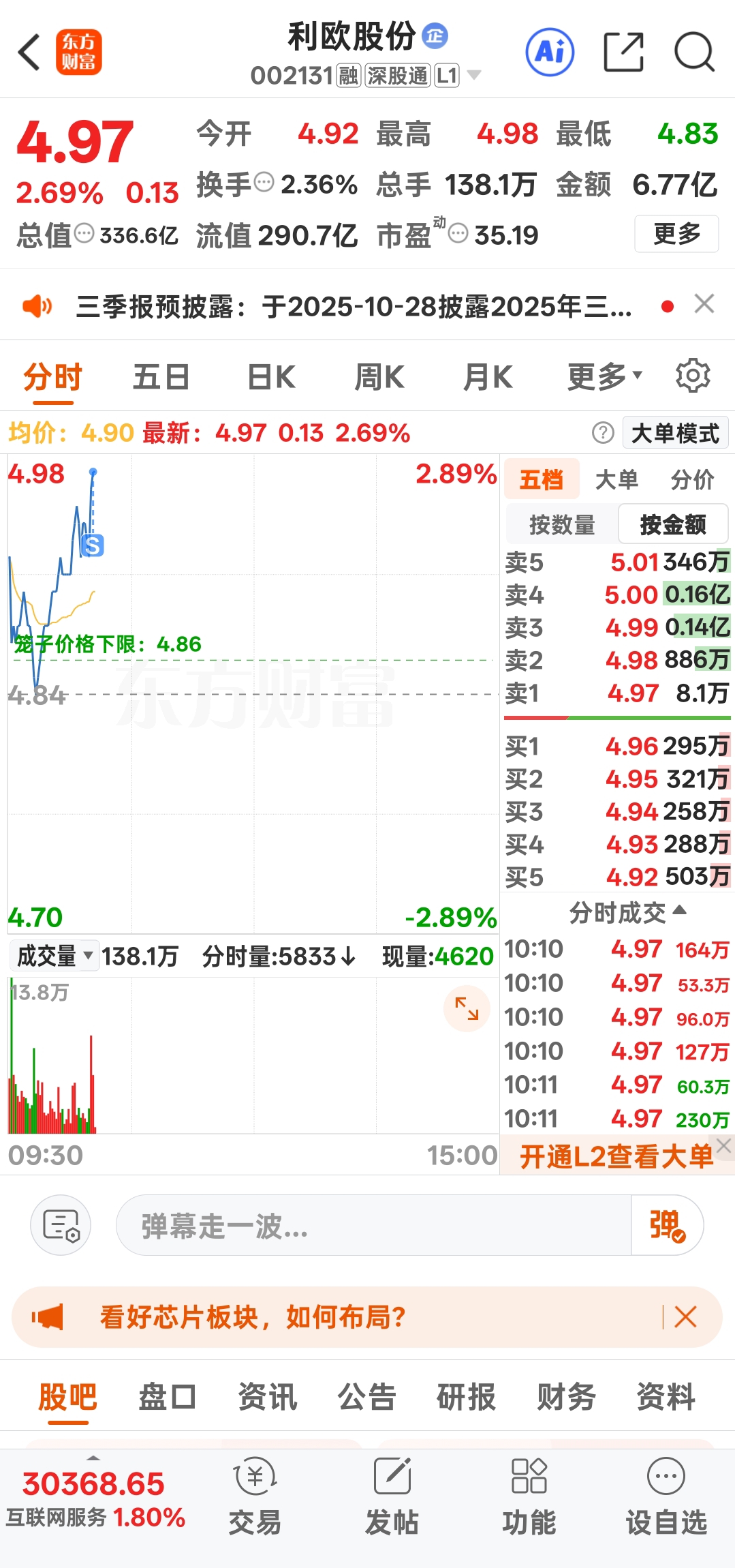 $利欧股份(SZ002131)$ 走了还有机会到5.06
