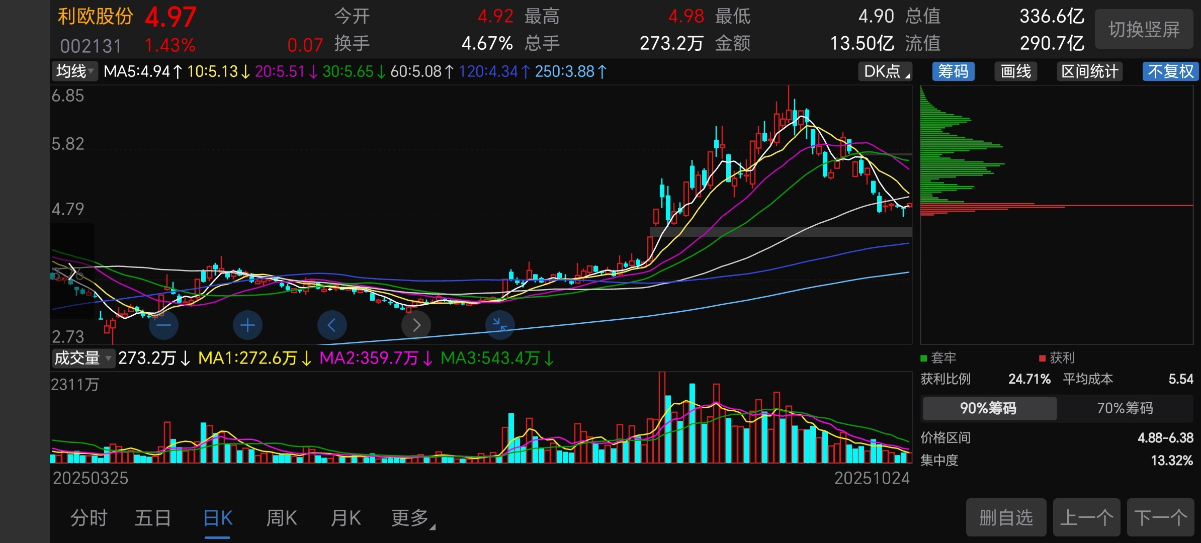 $利欧股份(SZ002131)$ 这个筹码分布……