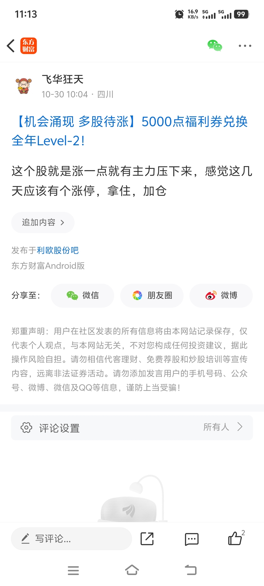 温馨提示: 1.根据《证券法》规定,禁止编造、传播虚假信息或者误导性信息,扰乱证券市场;2.用户在本社区发表的所有资料、言论等仅代表个人观点,与本网站立场无关,不对您构成任何投资建议。用户应基于自己的独立判断,自行决定证券投资并承担相应风险。《东方财富社区管理规定》