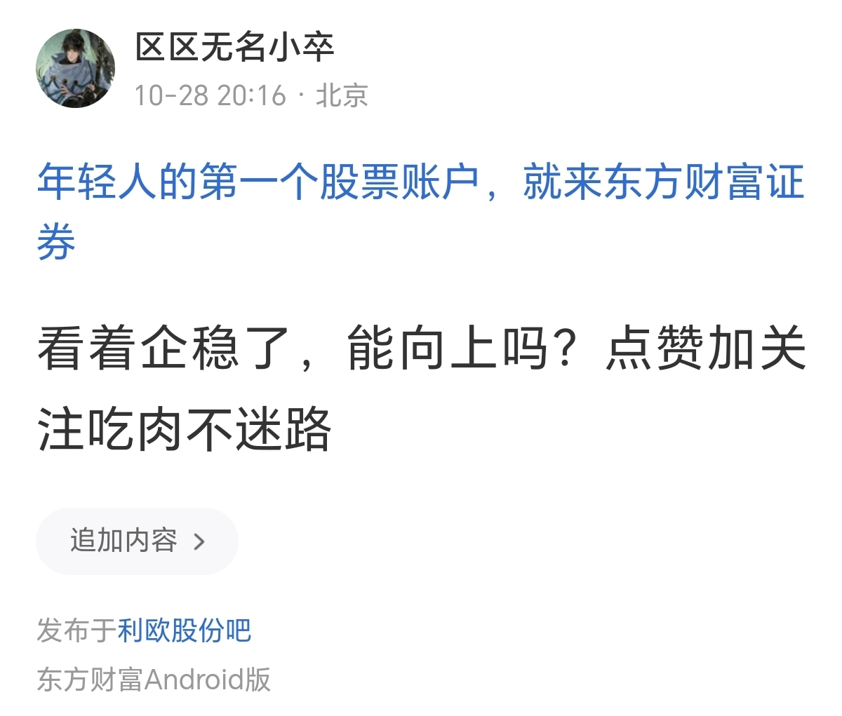 温馨提示: 1.根据《证券法》规定,禁止编造、传播虚假信息或者误导性信息,扰乱证券市场;2.用户在本社区发表的所有资料、言论等仅代表个人观点,与本网站立场无关,不对您构成任何投资建议。用户应基于自己的独立判断,自行决定证券投资并承担相应风险。《东方财富社区管理规定》