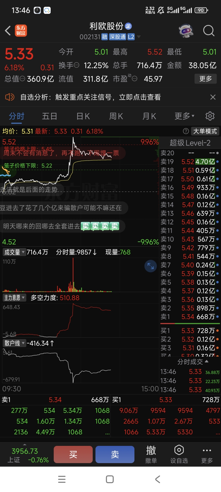 $利欧股份(SZ002131)$ 没有20亿封不住的,视觉都炸板了,大盘也不行
