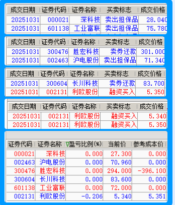 今日前期我们大赚的高位股$工业富联(SH601138)$ 、$胜宏科技(SZ300476)$ 等跌破10日线,沪电股份更是跌破了20日线,长川科技也跌破了多条短期均线,不得已全部卖了。再好的票都有阶段性见顶的时候。留得五湖明月在,不愁无处下金钩。不甘寂寞轻仓买了相对低位的$利欧股份(SZ002131)$ 解馋!