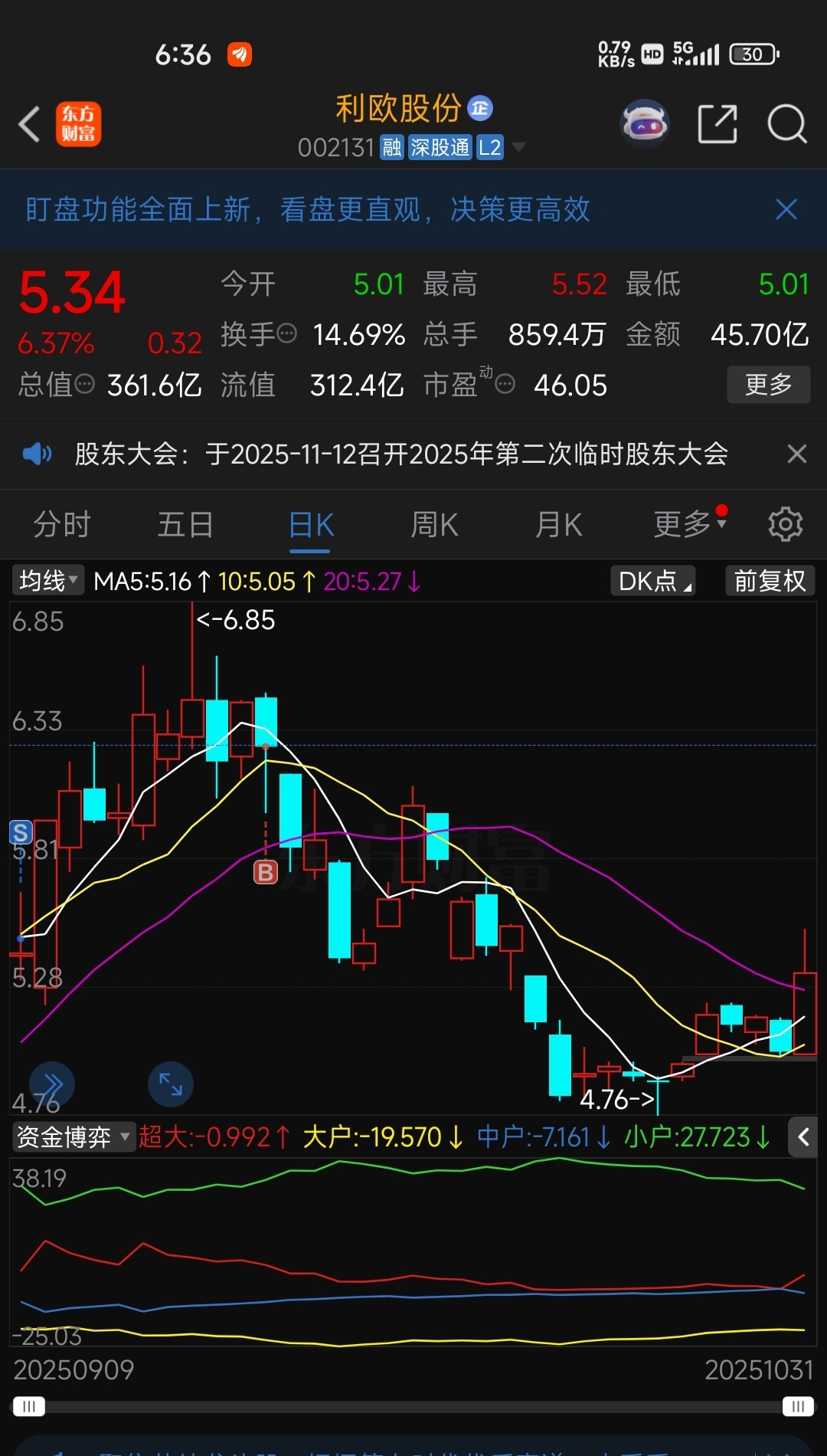 欧股份(SZ002131)$ 有望回本吗大佬们