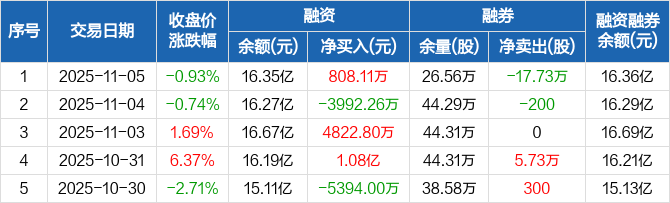利欧股份:融资净买入808.11万元,融资余额16.35亿元(11-05)