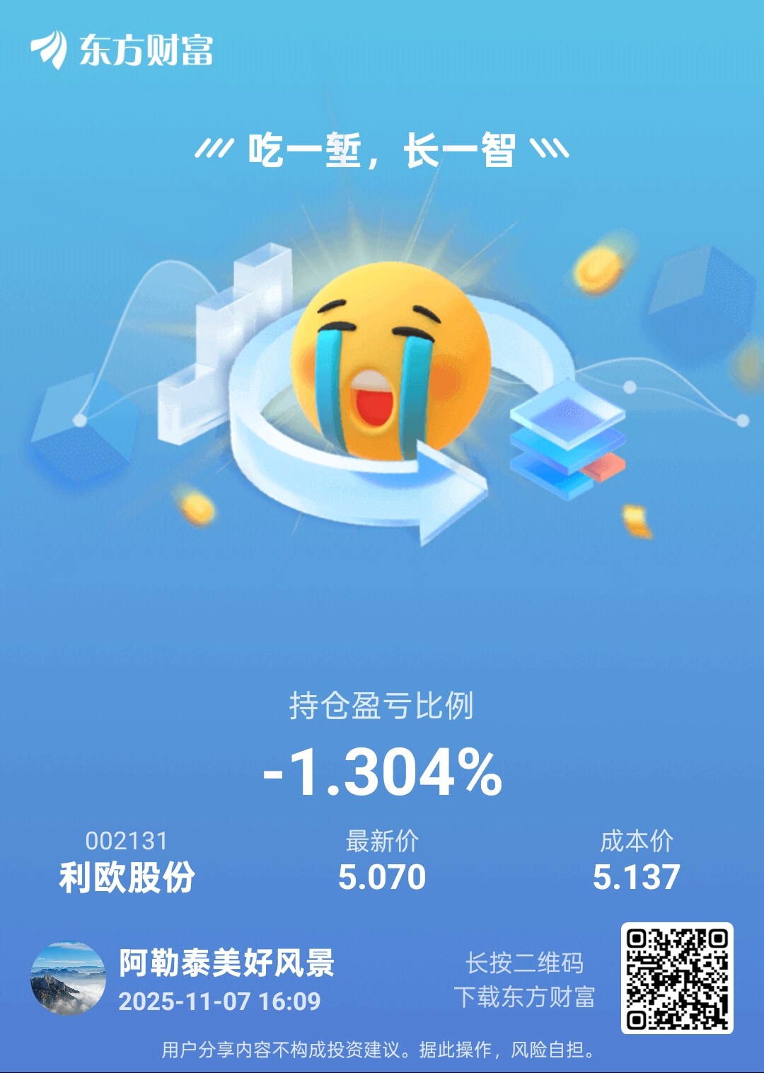 $利欧股份(SZ002131)$ 昨天入坑,真不该买你