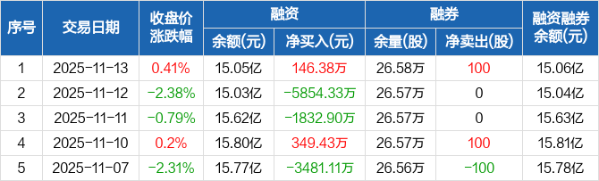 利欧股份:融资净买入146.38万元,融资余额15.05亿元(11-13)