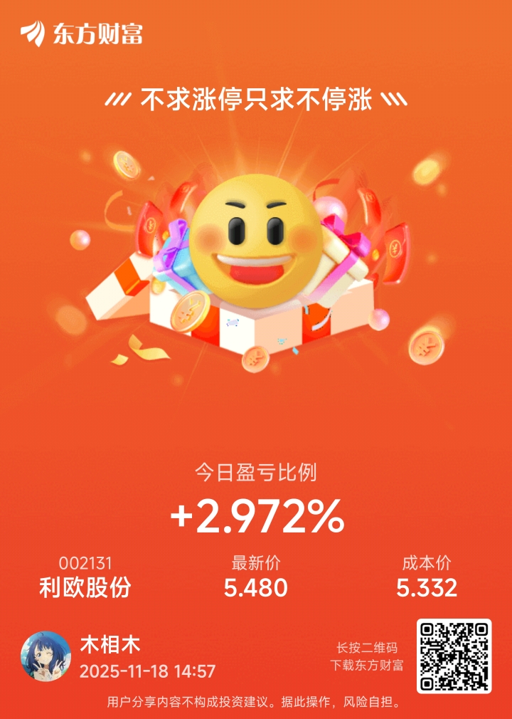 $利欧股份(SZ002131)$ 本来体面能离场卖出,现在不小心全仓买进。希望明天给个体面