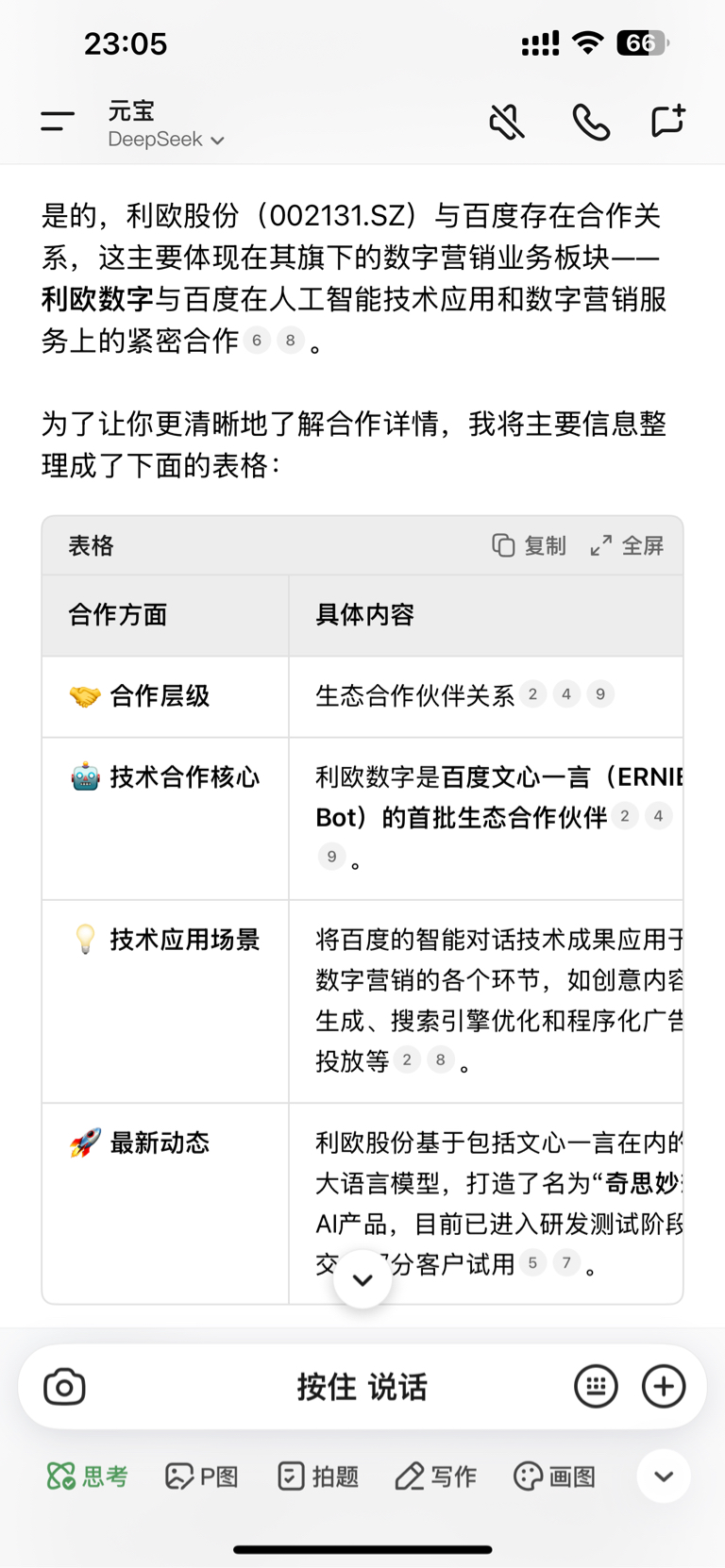 $利欧股份(SZ002131)$ 百度第三季度财报显示,AI业务收入同比增长超50%,其中,AI应用收入达26亿元;AI原生营销服务收入同比增长262%达28亿元。营销服务超预期