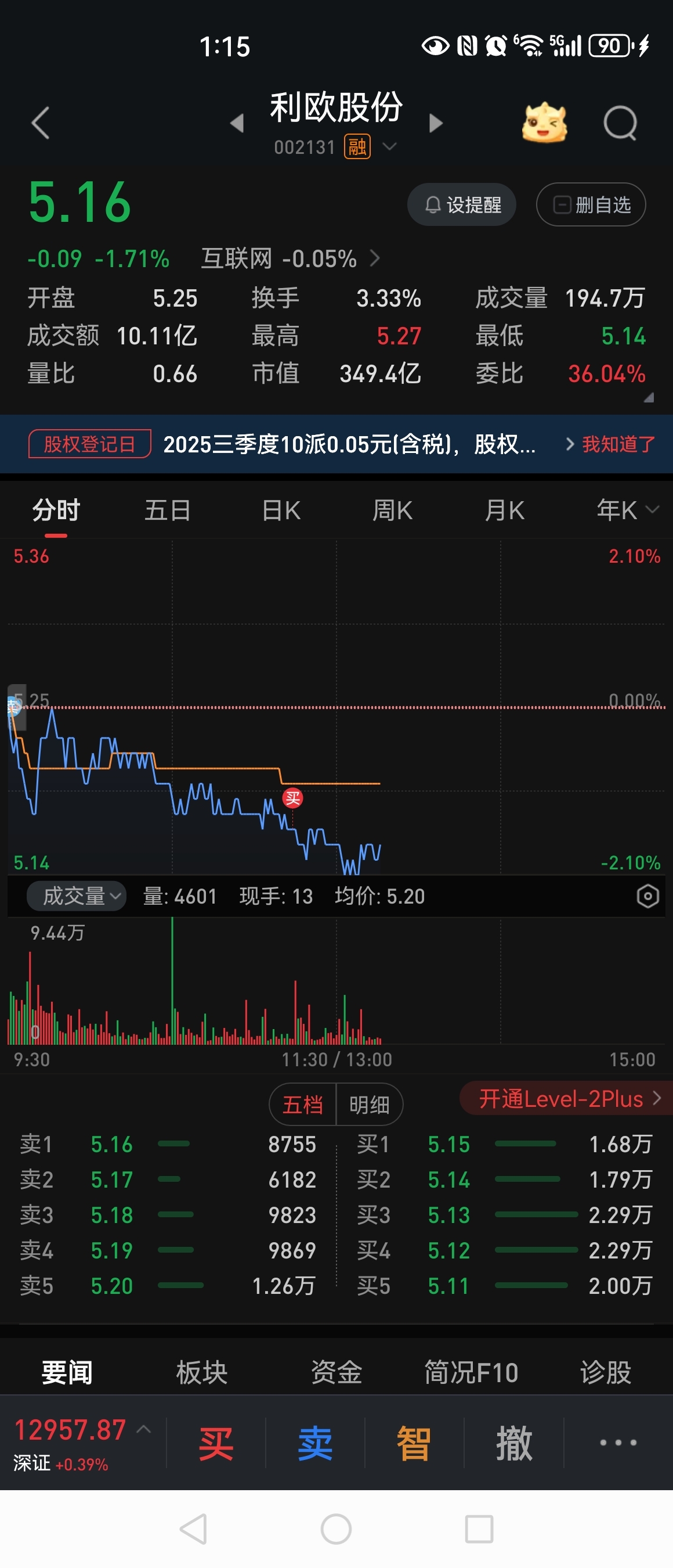 $利欧股份(SZ002131)$ T完,下班。。。明天还跌的话,继续抢筹码。