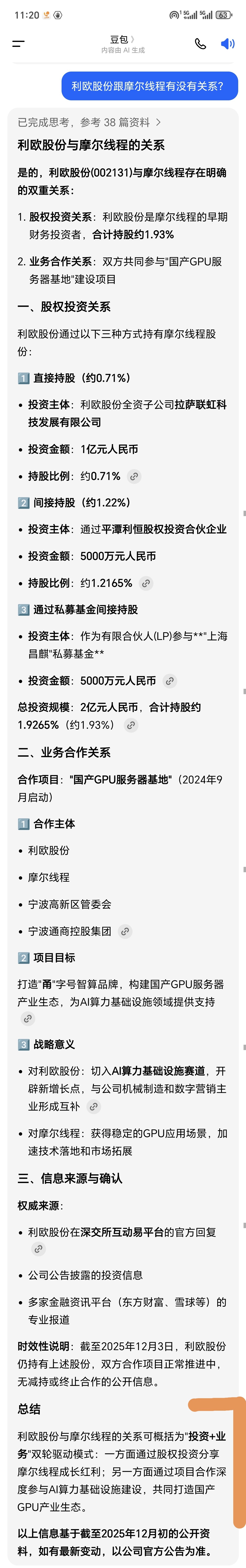 $利欧股份(SZ002131)$ 豆爷说利欧间接投资2亿持有2个点摩线股权,但主力说没就是没,大家不要吵了; 建议车上的股友都多用AI搜搜,什么 千问,元宝等多搜搜,让量化知道大家的关注