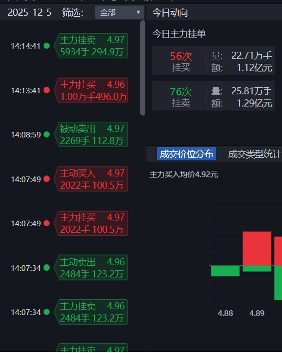量化一分一分的T,主力在12月5日的成本才4.92元,我们该如何应对?