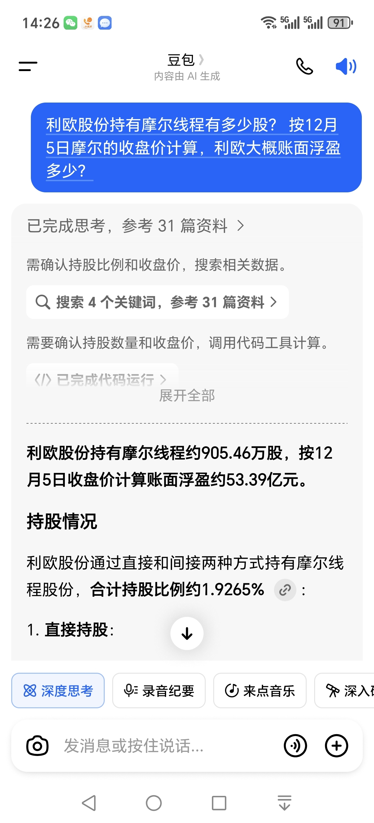 $利欧股份(SZ002131)$ 利欧持有的摩王收盘浮盈53亿