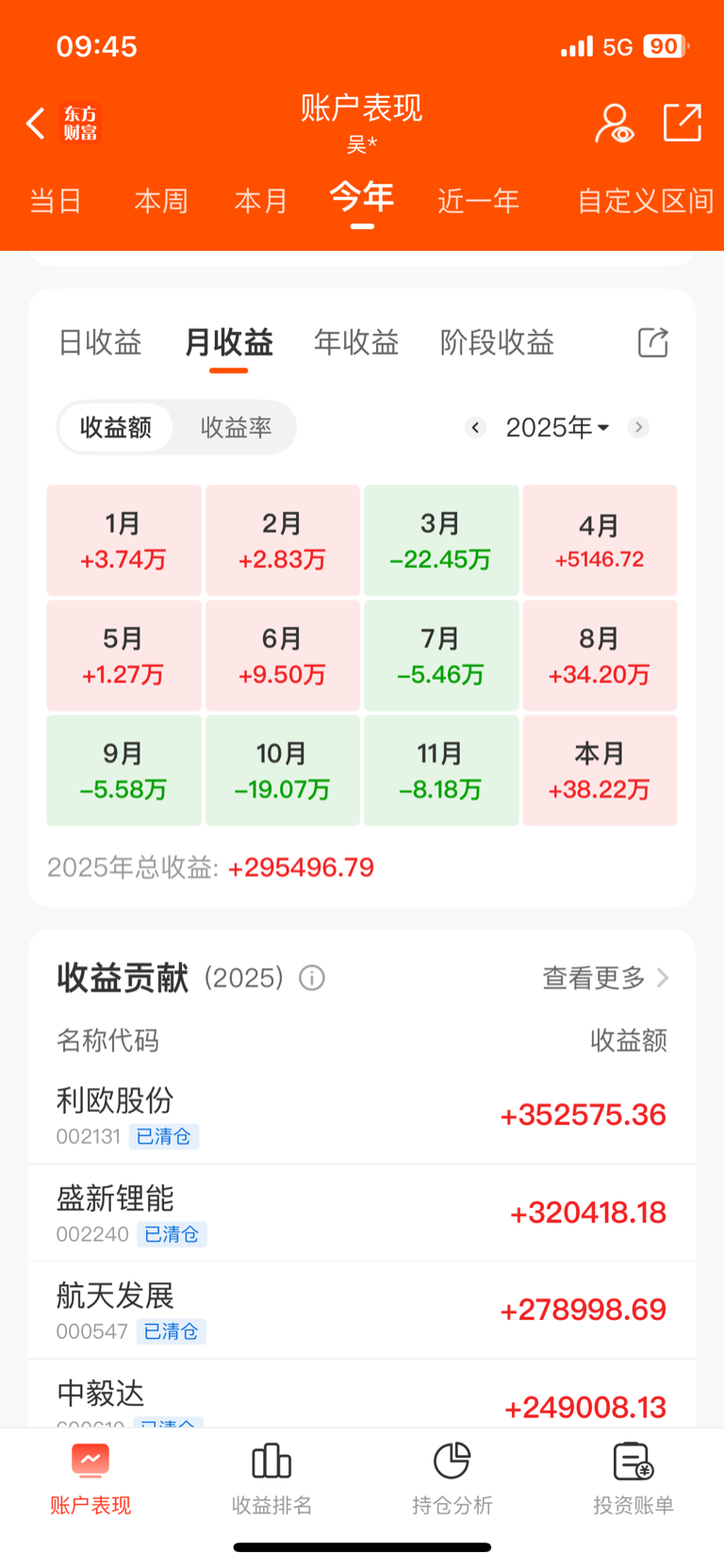2025年虽然没完,已经全清了,赚了点,但总结下来,真的只有运气二字。自己改不了频繁交易的毛病,犯了太多错误。错过了好几只趋势牛股,最懊恼的就是国庆后定了要长期持有多氟多,看好涨价逻辑,大概率会像中毅达那样,结果启动前换了其他股。展望2026年,希望自己克服频繁交易问题,等机会,不亏就行。
