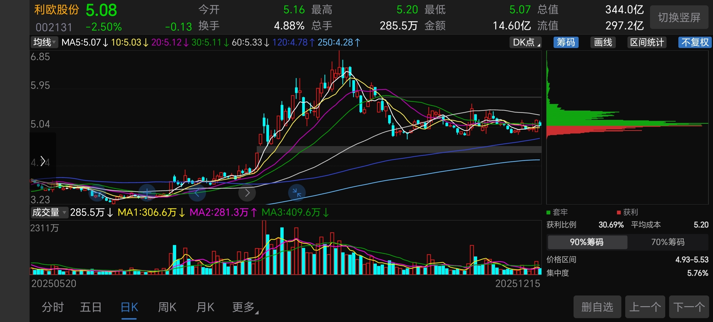 $利欧股份(SZ002131)$ 筹码集中锁定较好