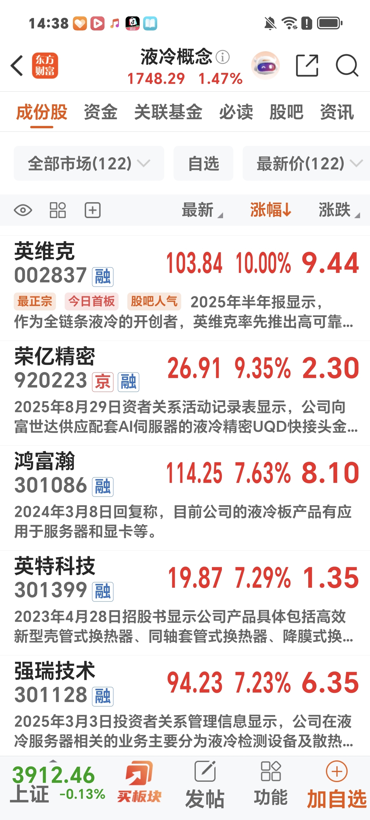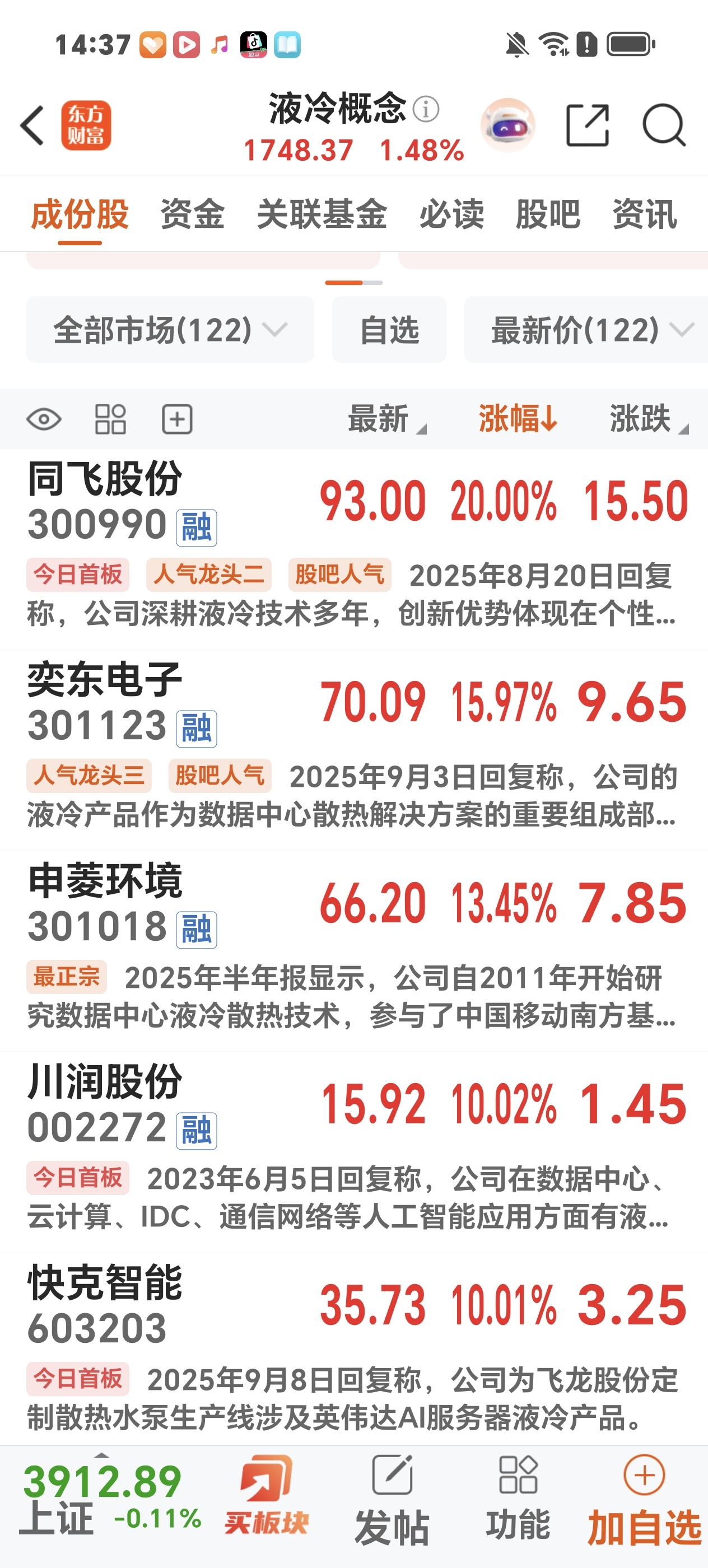 今天液冷概念涨的真好啊,欧你不要拖后腿呀!